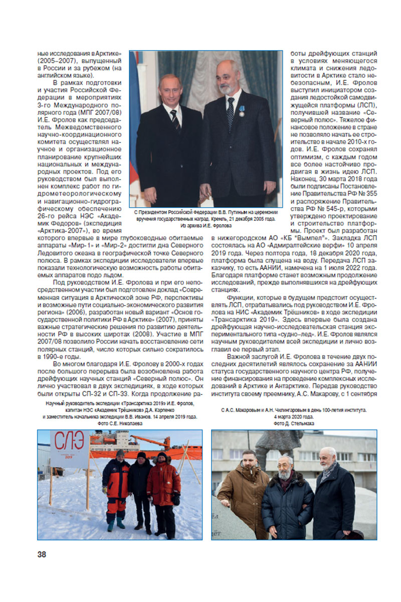 В декабре 2020 года не стало Ивана Евгеньевича Фролова. С его именем связан большой период истории ААНИИ. В память о нем подготовлен этот материал,в котором рассказывается о его научных достижениях и экспедиционных исследованиях, о работе на посту руководителя института.