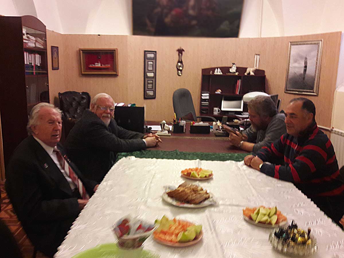 В кабинете директора музея Арктики и Антарктики. Н. А. Корнилов, В. В. Лукин, С. В. Фролов, В. И. Стругацкий. 13 октября 2016 года