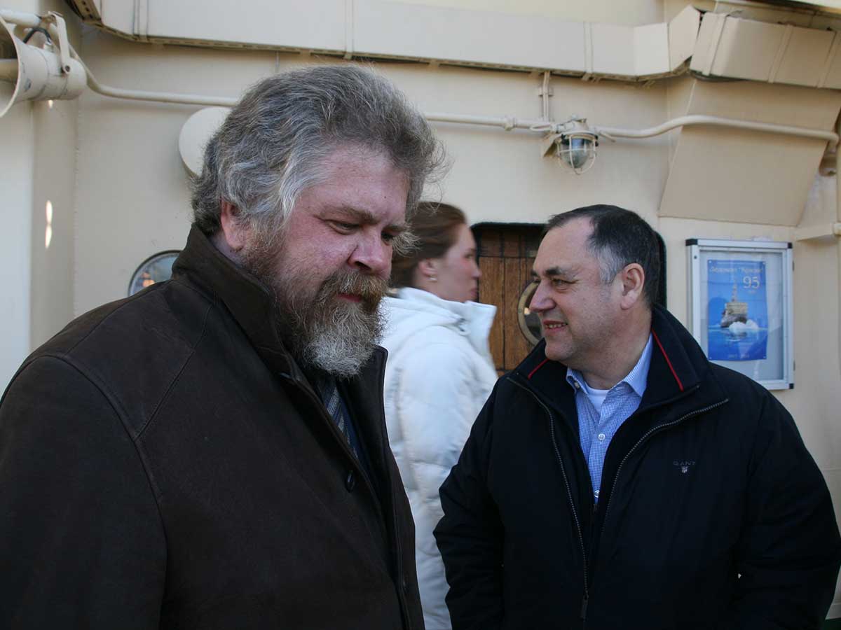 На 95-летнем юбилее ледокола "Красин" . 31 марта 2012 года. На фото также В. С. Ипполитов, М. В. Дукальская, В. И. Стругацкий