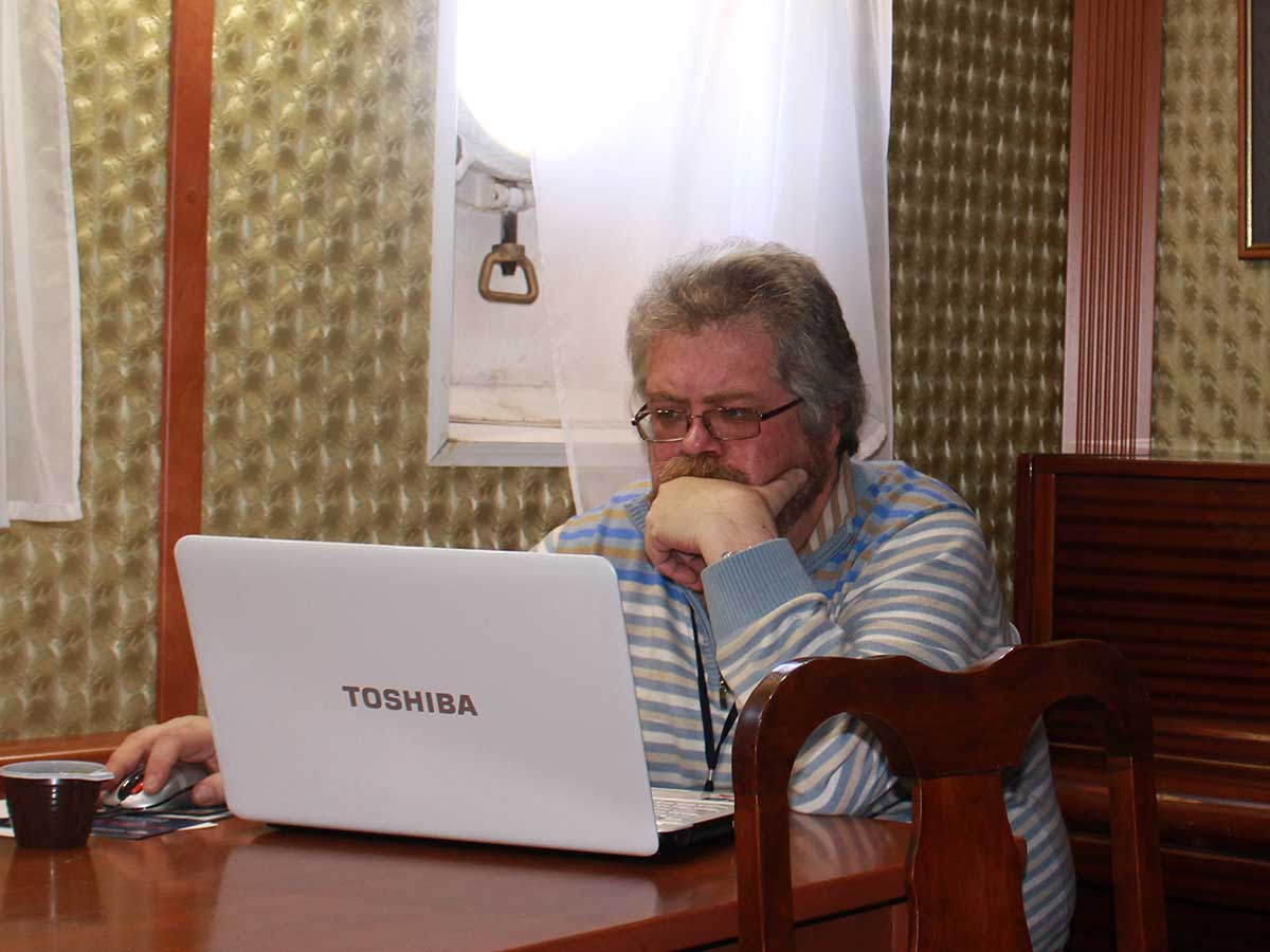 Чтения на ледоколе "Красин". 30 апреля 2015 года. Сергей готовится к докладу.