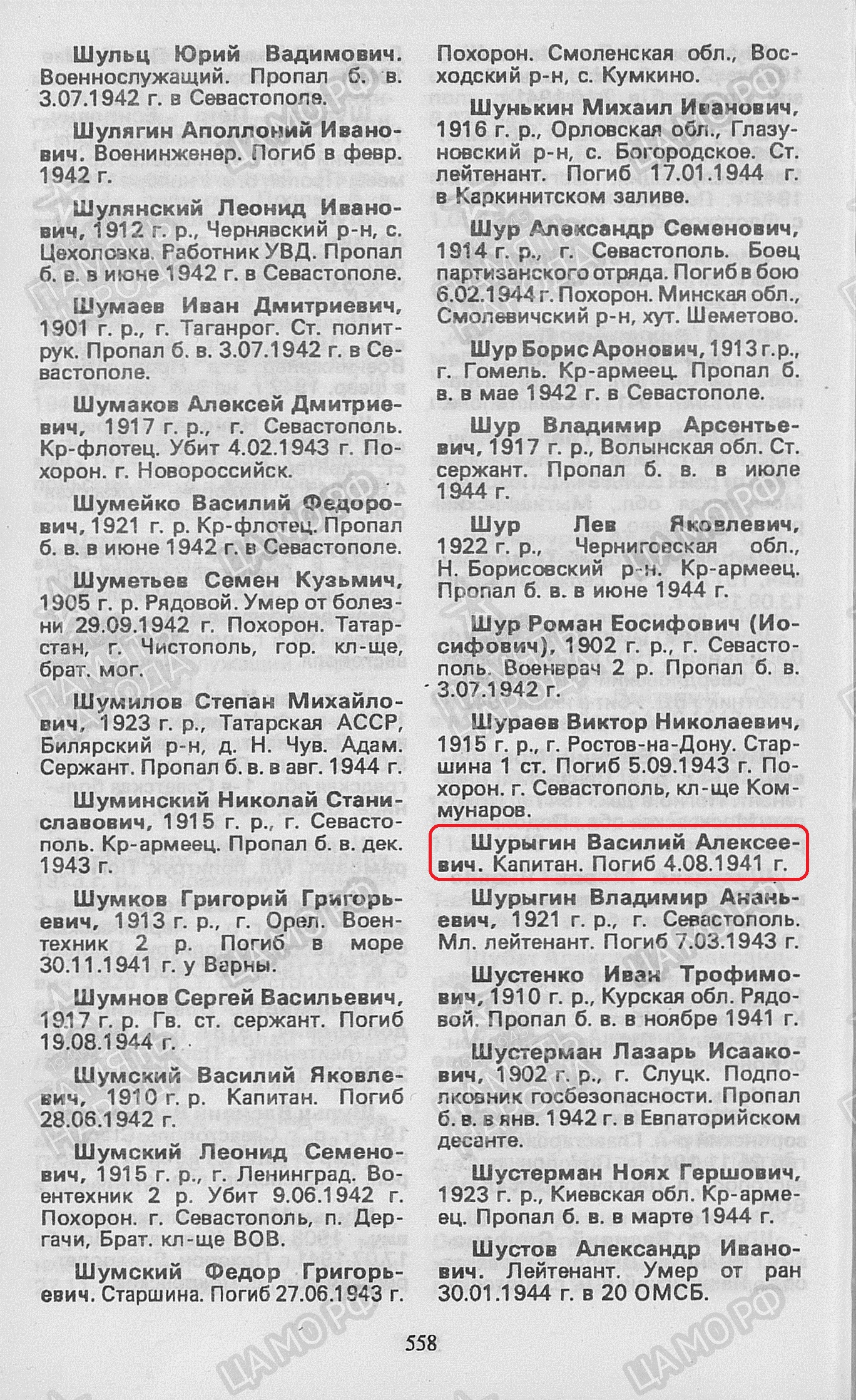 ...смерти Василия Шурыгина, погибшего под Одессой в августе 1941 года...