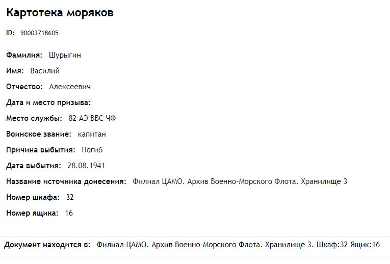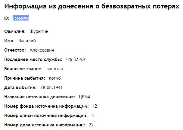...смерти Василия Шурыгина, погибшего под Одессой в августе 1941 года...