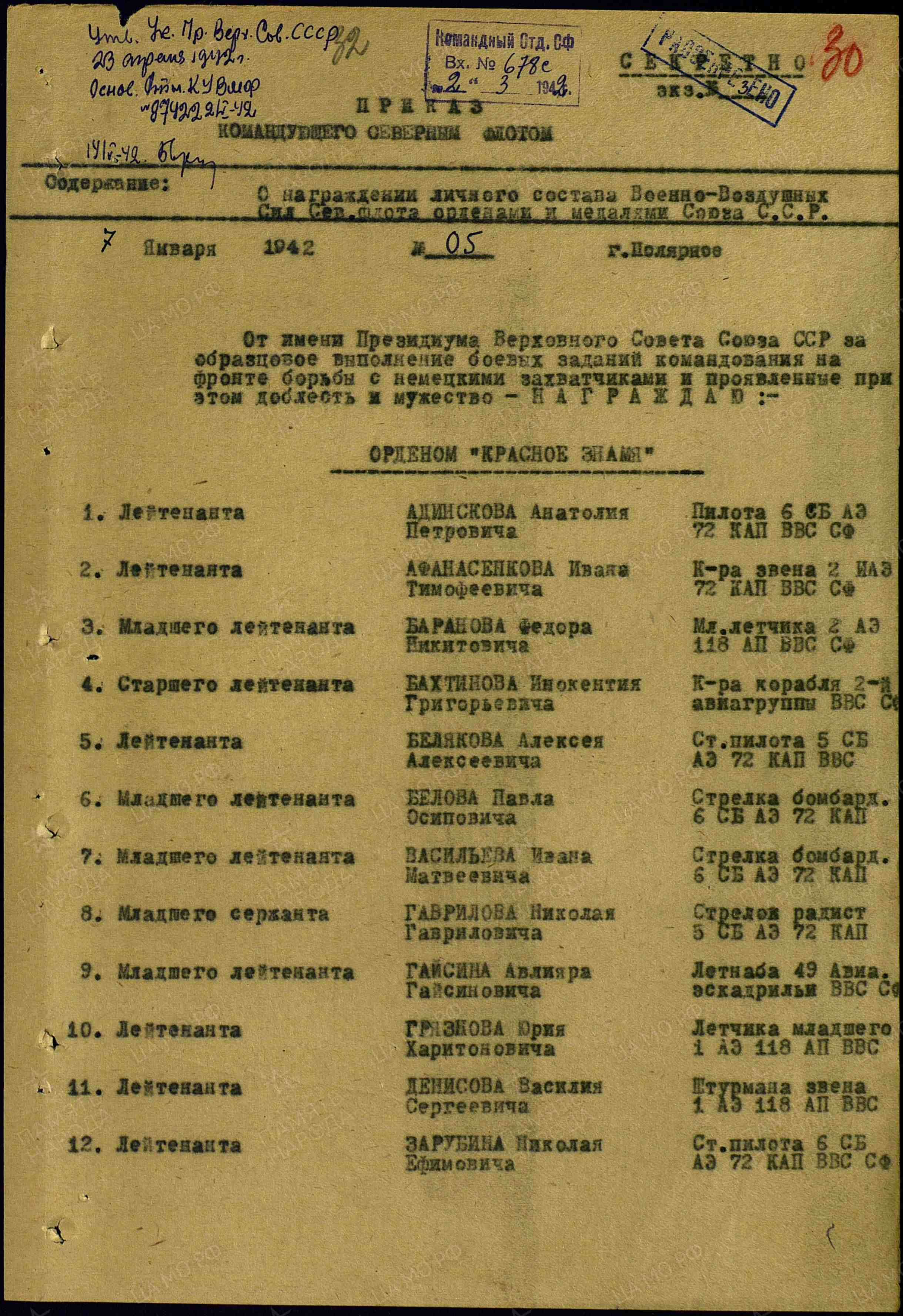 Приказ флота (флотилии) № 5 От 07.01.1942