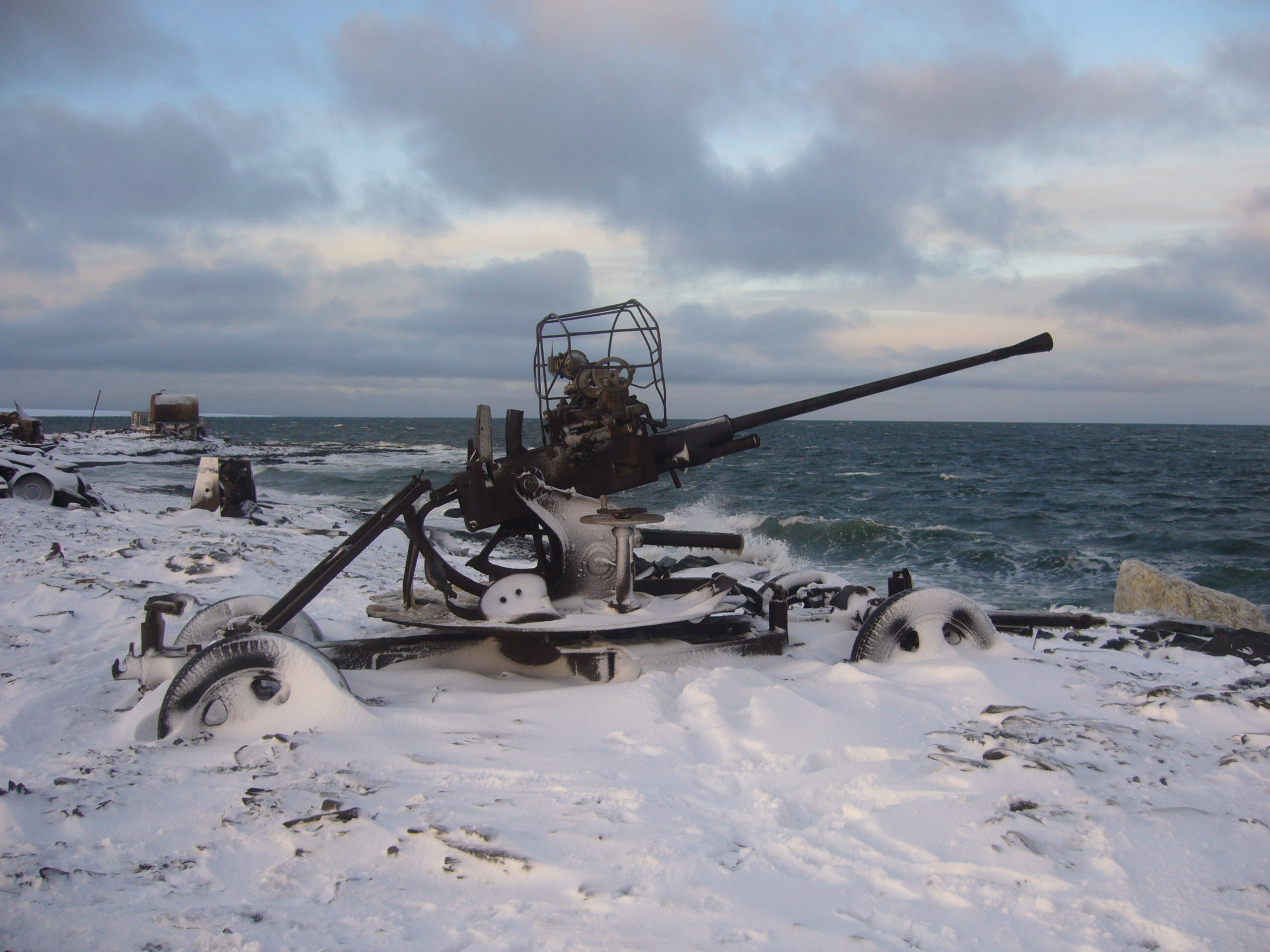 А рядом с пушкой могила. В 1934-м году разбился самолет полярников, экипаж погиб, и вот там, на самом мысу, их похоронили, и поставили пямятник. На современных фотографиях ни пушки, ни памятника летчикам я уже не увидел. Вот, вкратце, что я могу рассказать об этом интересном месте.