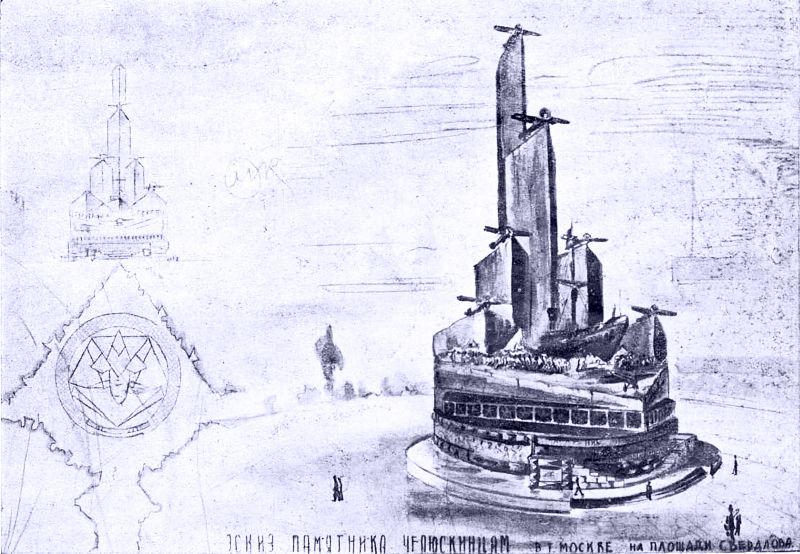 Первые два варианта «Памятник челюскинцам» скульптора Веры Мухиной не сохранились. Еще два памятника - известны на бумаге. Свои варианты она делала в период с 1937 по 1940 годы.