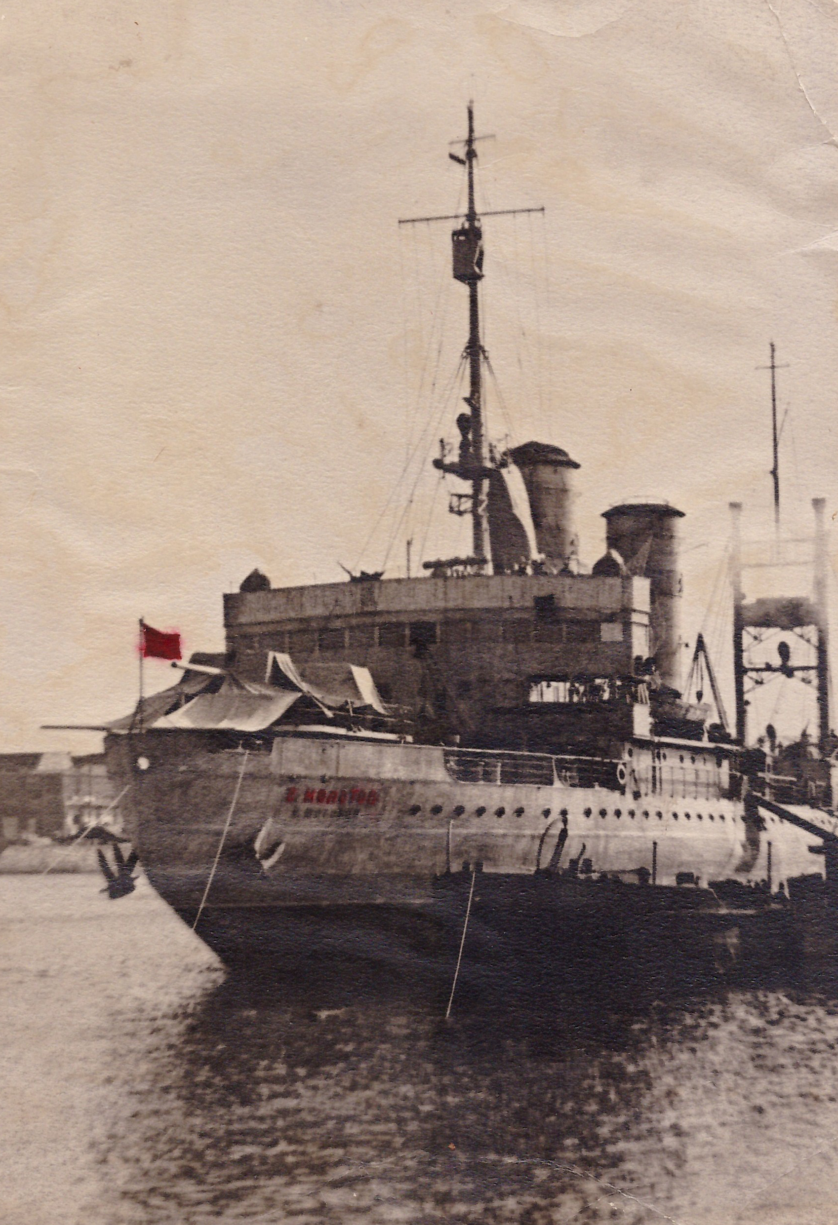 Названия не видно. По задней мачте видно, что это не "Сталин" и не "Каганович", т.е. либо "Молотов", либо "Микоян"