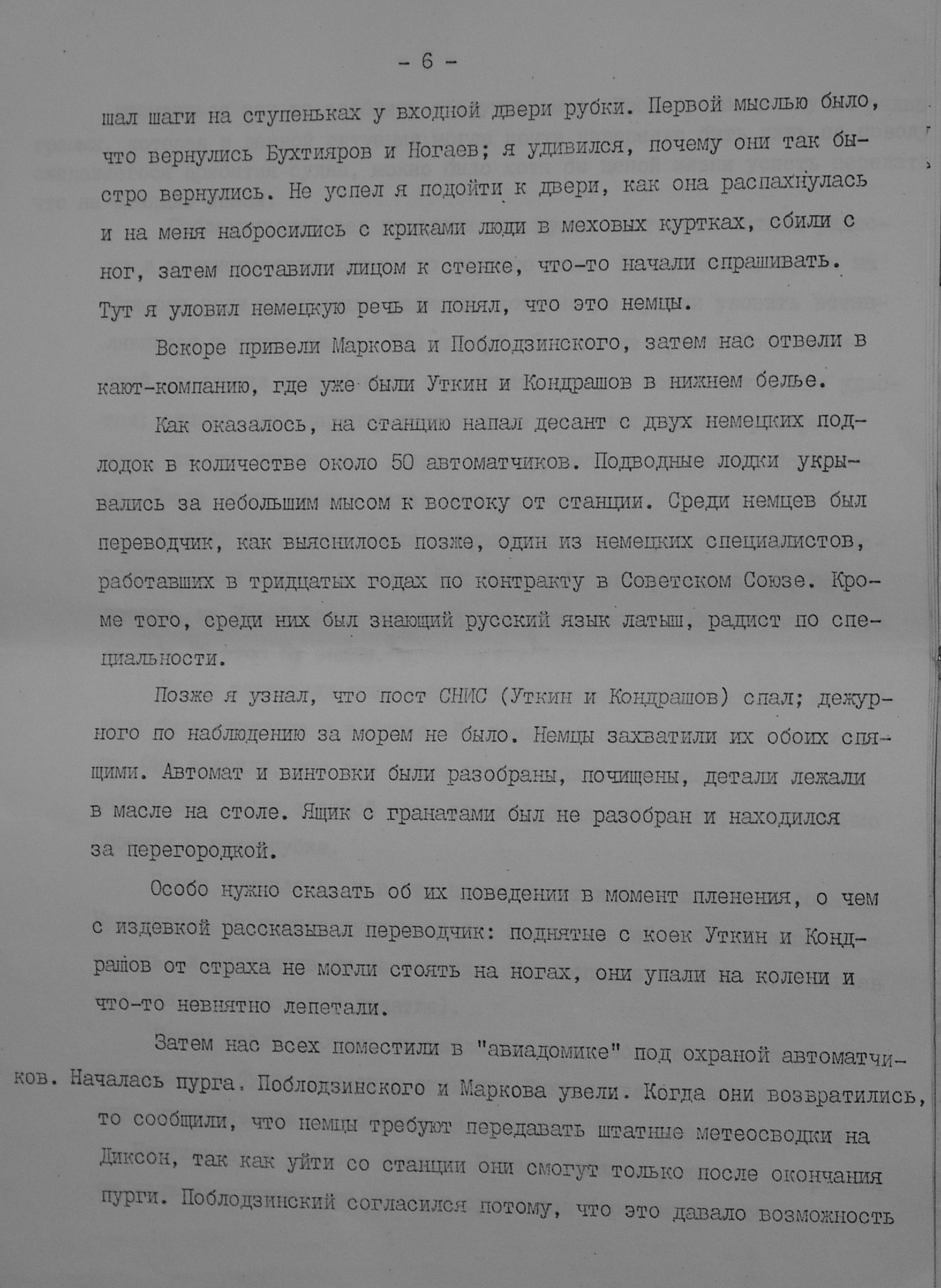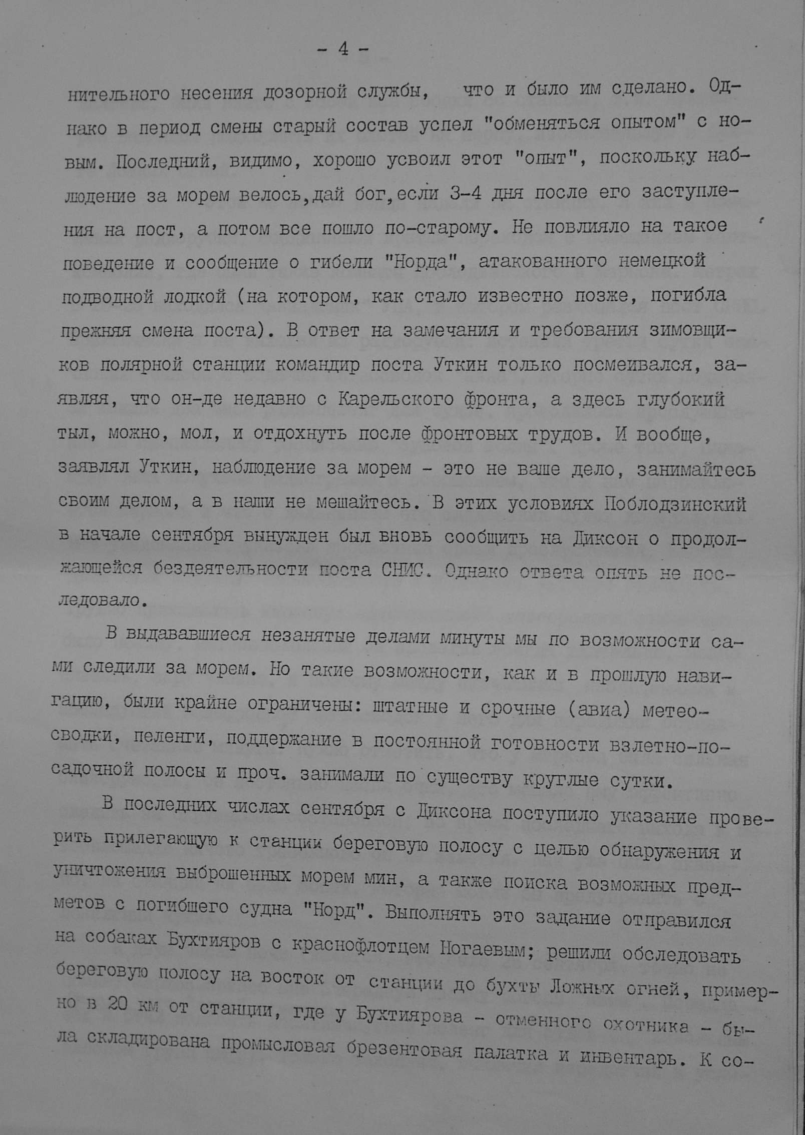На Диксоне были случаи, когда медведь нападал на человека и сжирал. Как-то повариха вышла из дома и пропала, а надо ей было пройти всего несколько метров до другого жилища... Медведей начали отстреливать и вспарывать им животы. В одном нашли золотую сережку...