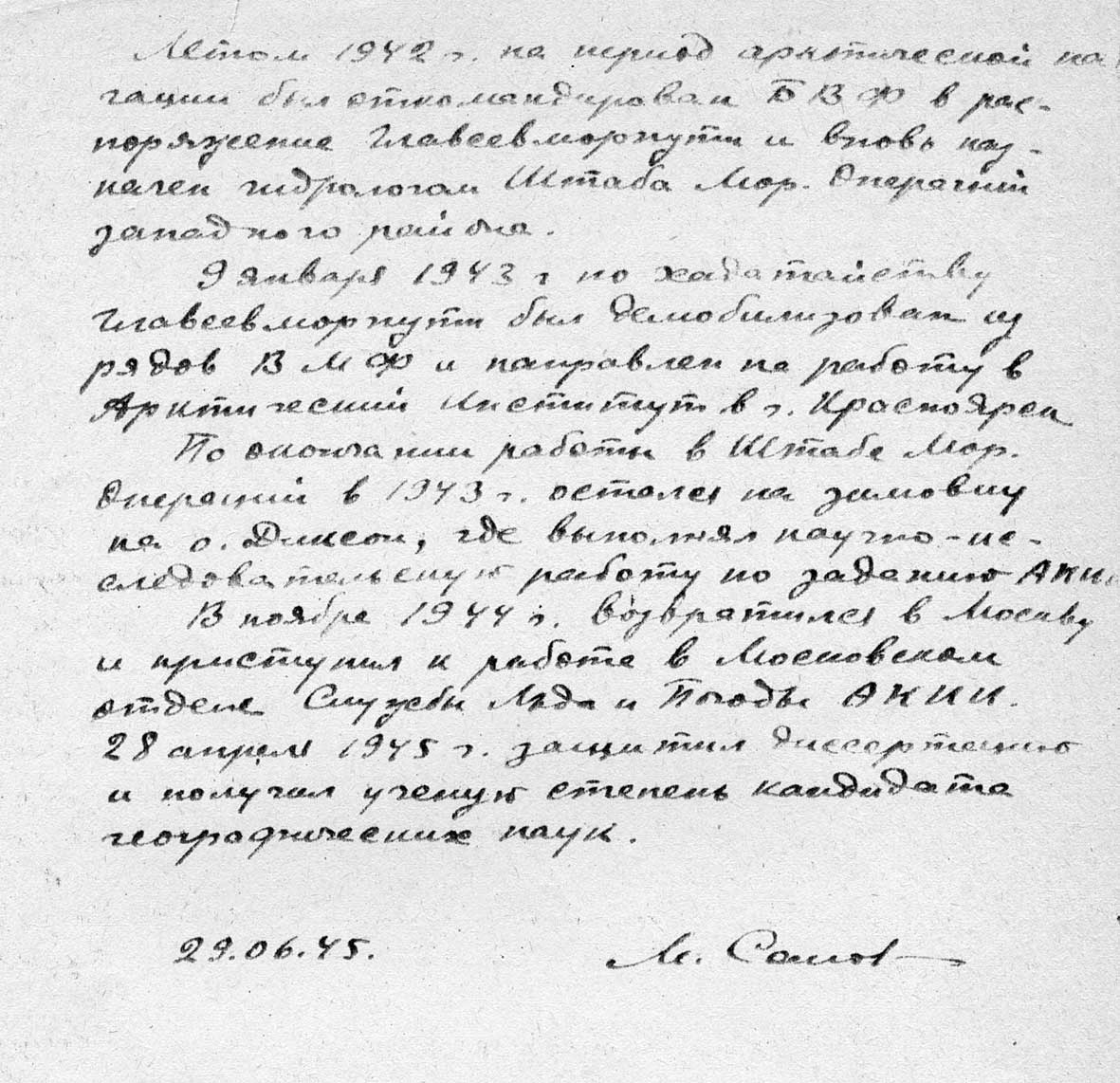 На другой день утром Михаил Михайлович Сомов проводил меня на берег, и присланная с судна шлюпка увезла меня. Такова была нагла первая встреча. Тогда, конечно, мы не предполагали, что продолжением ее будет дружба на всю жизнь. Вскоре Сомов переехал с семьей в Ленинград и стал работать в Арктическом институте.