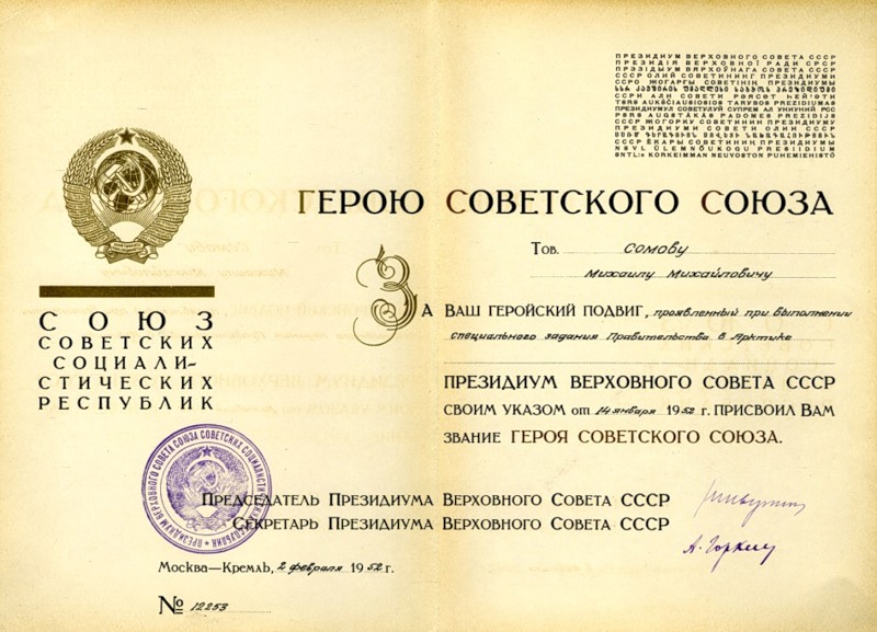 Жили мы в Ленинграде в одном доме и, как говорят, «дружили семьями». Перед вылетом на льдину жена Сомова, Серафима Григорьевна, дала мне два письма с поручением вручить Михаилу Михаиловичу только одно из них на мое усмотрение, в зависимости от обстоятельств. Дело в том, что незадолго до этого умер его отец — Михаил Павлович Сомов. В одном письме жены сообщалась эта печальная весть, а в другом — этот вопрос был обойден молчанием. Когда я прилетел, то увидел, что у Сомова слишком много забот и переживаний, а предстоят еще большие испытания в полярную ночь. И я вручил ему «благополучное» письмо, а второе письмо, с известием о смерти отца, в нераспечатанном виде увез с собой и вернул жене.