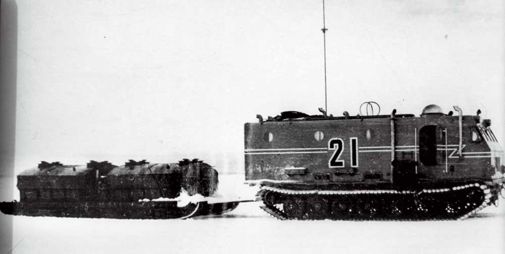 В 1955 году Первую советскую трансантарктическую экспедицию оснастили, не мудрствуя лукаво, обычными гусеничными тракторами ЧТЗ. К сожалению, эти машины были весьма тихоходны: за всю смену на них с трудом удалось пройти 450 км. В конечной точке маршрута была основана научная станция Пионерская. Что касается колесных машин, то доставленные в Антарктиду грузовики ЗИЛ-157 показали свою полную непригодность в глубоких снегах.