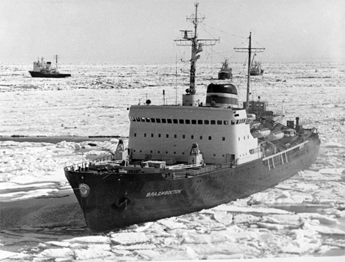 Ледокол „Владивосток“ из серии ледоколов финской постройки типа „Москва" вступил в строй в 1969 г. Предназначался для проводки судов на трассе Северного морского пути в основном в летний период и в замерзающих неарктических морях.