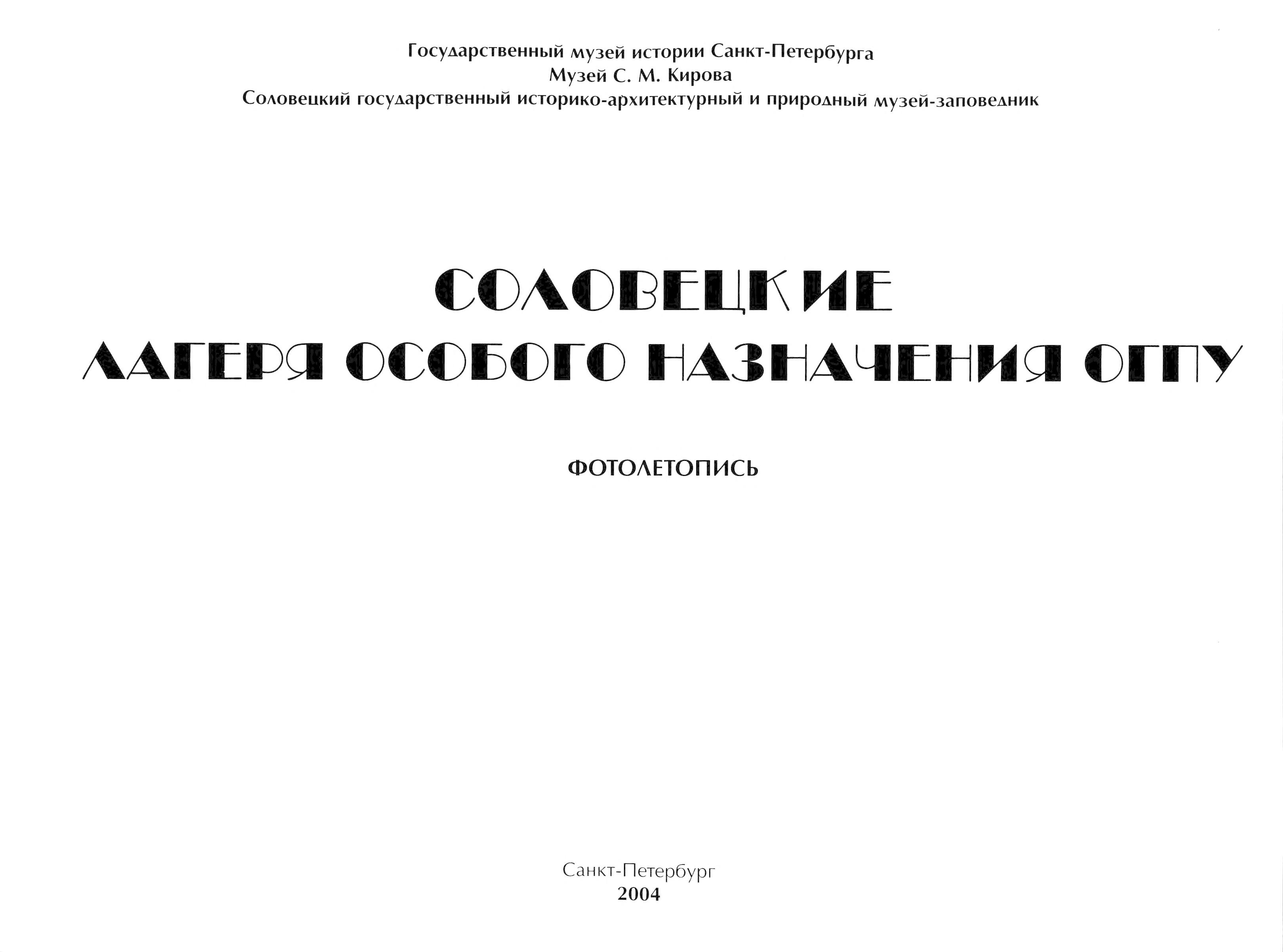 Альбом "Соловецкие лагеря особого назначения". Фотолетопись. С.-Петербург, 2004.