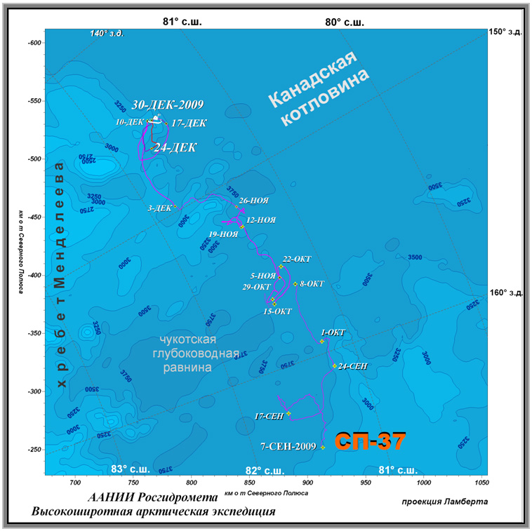 Информация о дрейфующей станции «Северный полюс – 37» за период 25-30 декабря 2009