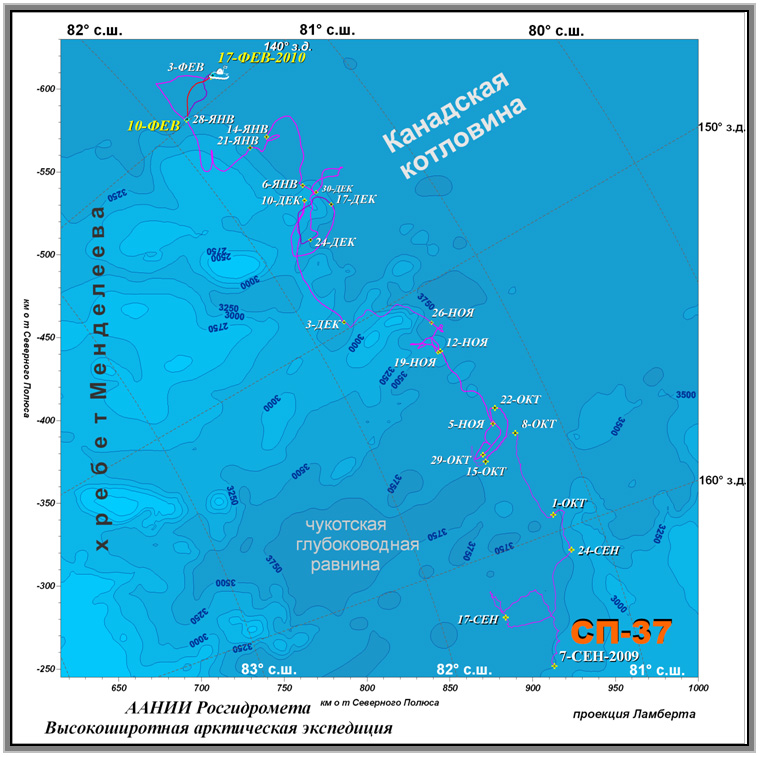 Информация о дрейфующей станции «Северный полюс-37» за период 25.02-03.03.2010