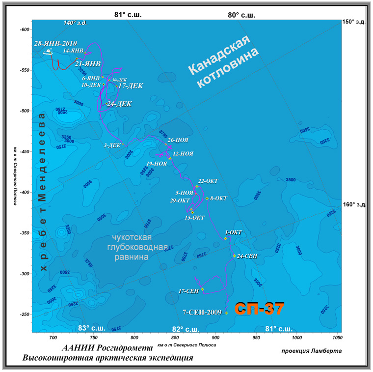 Информация о дрейфующей станции «Северный полюс – 37» за период 04-10 декабря 2009