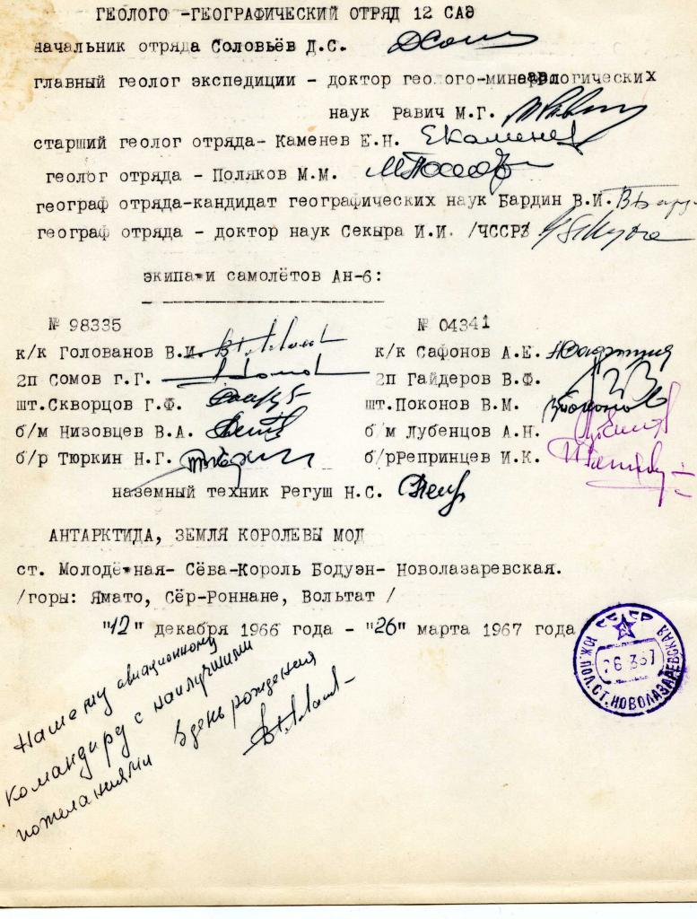 "Molodyozhnaya" (Antarctica); returned from Antarctic expedition jun67, re-equipped and TK-19
