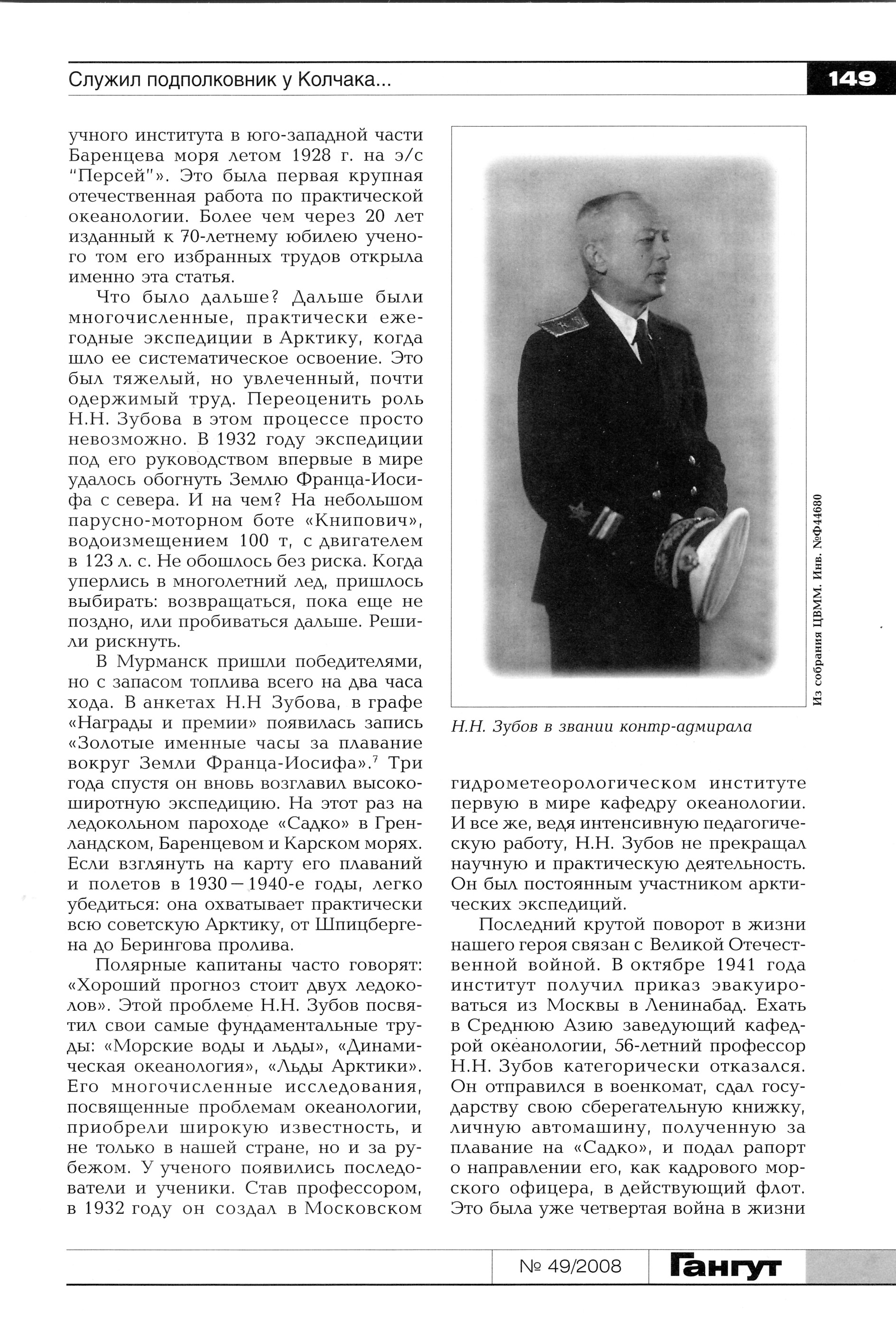 Сообщение : Адмирал Арктики - Николай Николаевич Зубов.