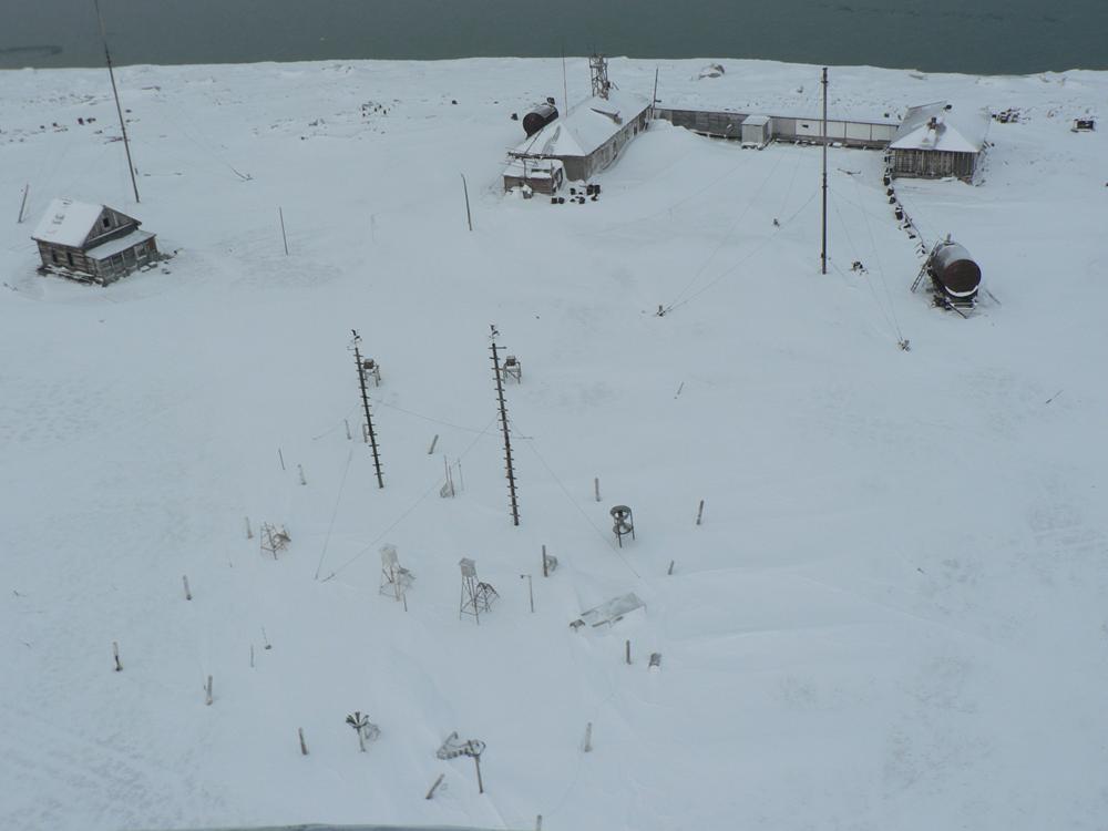 Станция довольно большая — просторная кают-компания, кухня, множество рабочих комнат, баня. Последние два года на Севере не было навигации, а это значит, что люди остались без свежих продуктов и овощей. Питались в основном концентратами и тем, что добудут рыбалкой и охотой. Теперь настала наша очередь поделиться продуктами. Достаем мясо, шоколад, халву, конфеты, мед с орехами. Очень интересно слушать рассказы этих людей об их жизни на станции, проблемах. Вдали от общества, цивилизации у них складывается свой особый взгляд на мир и отношение к жизни. Найдя в нас благодарных слушателей, они не могли наговориться, и их рассказам не было видно конца. Незаметно, по одному, продолжая слушать, укладываемся спать. После бани глаза закрываются сами. Уже 6 часов утра. За стенами простирается с одной стороны тундра как море, с другой — море как тундра. Небольшой ветер — 3,5 м/с. Термометр показывает –10,5°C. Плохая видимость, на горизонте небо сливается с землей.