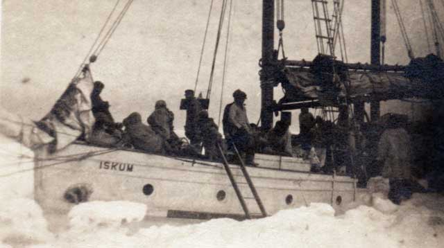Three original rare 1923 photographs depicting the Soviet Russian siezure of the American Schooner / trading ship Iskum in Siberian waters. The Iskum, out of Tacoma Washington, had been inolved with trading with Eskimos in the Arctic and Siberia. In 1923 the ship was siezed by Soviet forces while in Siberian waters, the ship later managed to escape. However, she was lost by striking an uncharted rock, Captain George Devinney and his crew escaping in three dories and rowing to Atka Island The photos depict the following: Two Soviet soldiers on deck of the Iskum, an officer or possible Captian Devinney on deck of the Iskum and the Iskum in an ice flow ( possibly stuck in the ice ) The soviet soliders photo 3 7/8 x 2 7/8, the officer / Captain Devinney photo 3 1/2 x 2 1/2 inches, the Iskum in an ice flow photo 3 3/8 x 2 3/8 inches. Each unmounted. The photos quite rare and depict one of the first confrontations between Soviet Russia and the United States. Possibly the very first nautical confrontation between the two nations.