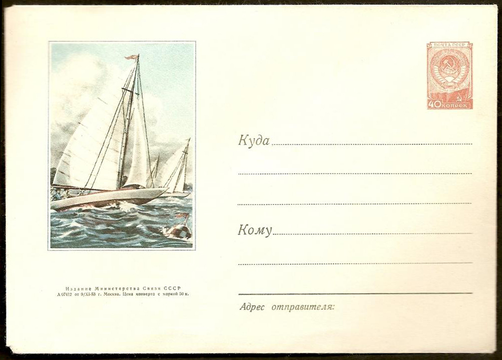 А 07412. 09. 11.1953. 40 к. Яхты.