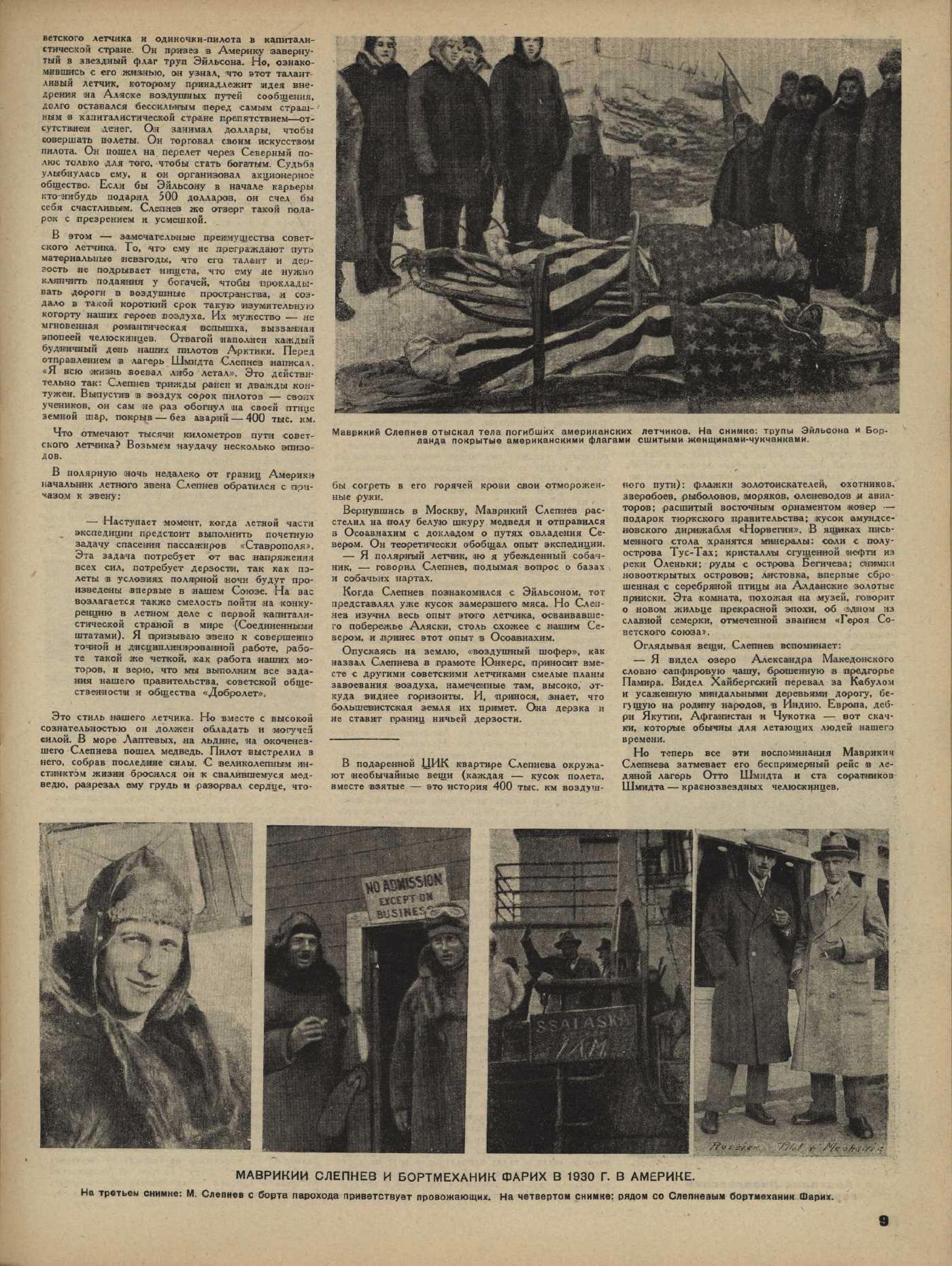 Эйельсон и Берланд, застрявшие сейчас в районе мыса Северного у советских берегов Северного Ледовитого океана, принадлежат к категории коммерческих летунов Аляски. Лейтенант американского флота летчик Эйельсон и его механик Берланд служат в авиационной коммерческой фирме «Эрвейс транспорт компани». На аэропланах они перевозят на Аляску меха, скупаемые американцами на далеких берегах океана, перебрасывают американских охотников с одного места охоты на другое и выполняют на севере службу «воздушных извозчиков».