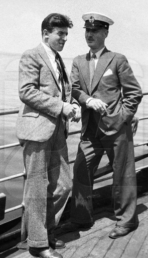 Летчик Маврикий Слепнев на борту парохода «Смоленск» по завершению операции по спасению челюскинцев, 1934 г.