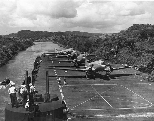 Транспортные самолёты Douglas R4-D Skytrain на палубе авианосца USS Philippine Sea (CV-47) во время операции "Highjump"