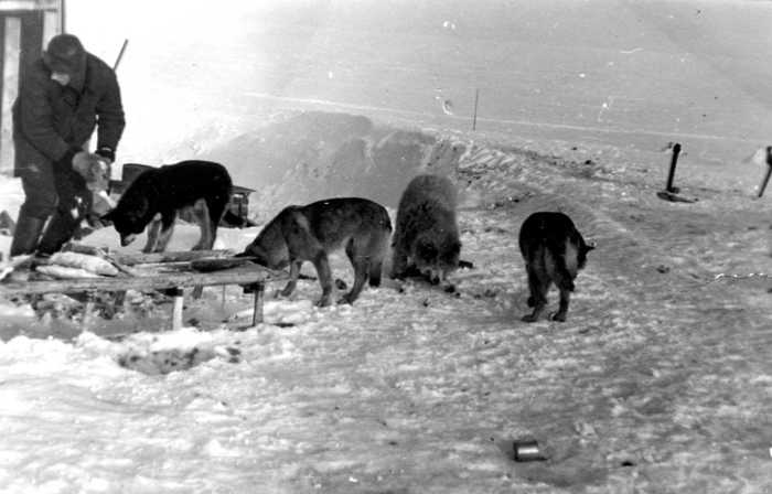 … Из домашних животных на п/ст имелось 13 ездовых собак и 2 поросёнка, которые с 5 кг доросли до 100 кг.