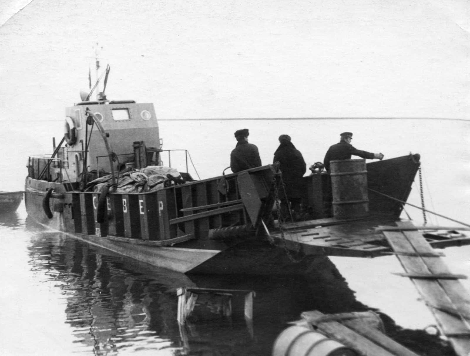 Затем зашли в б. Провидение, где взяли с п/х Киров несколько сот т. угля и без остановки дошли до самого мыса Отто Шмидта 1 августа 33г … работы по разгрузке и попытки пройти на Запад, но мешал лёд. У мыса Кузьмина навстречу встретили п/ходный ледорез «Литке» и пароходы Сучан, Микоян и Анабара. Литке вывел изо льда на расстояние 6-7 миль, после того как Литке ушёл, через 2-3 мили случилась авария – сломаны лопасти винта. Выход один – замена. Для этого весь груз с кормы надо перебросить на нос корабля. В течение 6 суток винт заменён и пошли дальше.