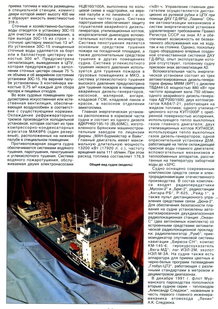 В декабре 1991 г. флот Мурманского пароходства пополнился вторым судном серии - теплоходом „Александр Следзюк", названным в честь первого главного инженера-механика атомохода „Ленин" А.К. Следзюка.