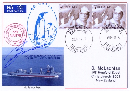 PAARDEBERG 2. 2006 (March 14th) Postcard posted Paquebot and signed by Ice-Pilot. Price US$8