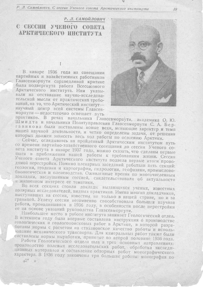 Р.Л. Самойлович. "С сессии ученого совета Арктического Института", Советская Арктика, 1937, март, с.20
