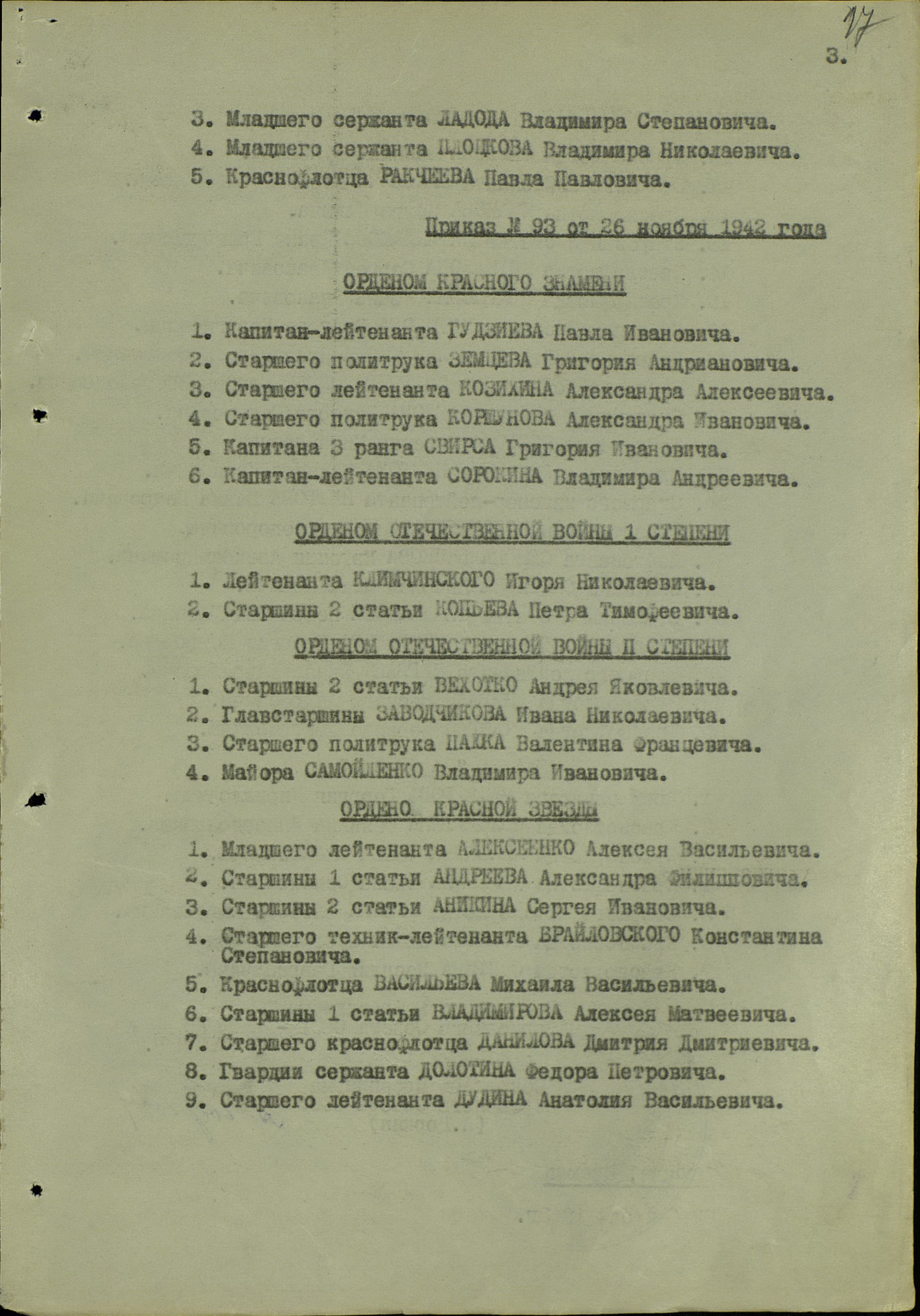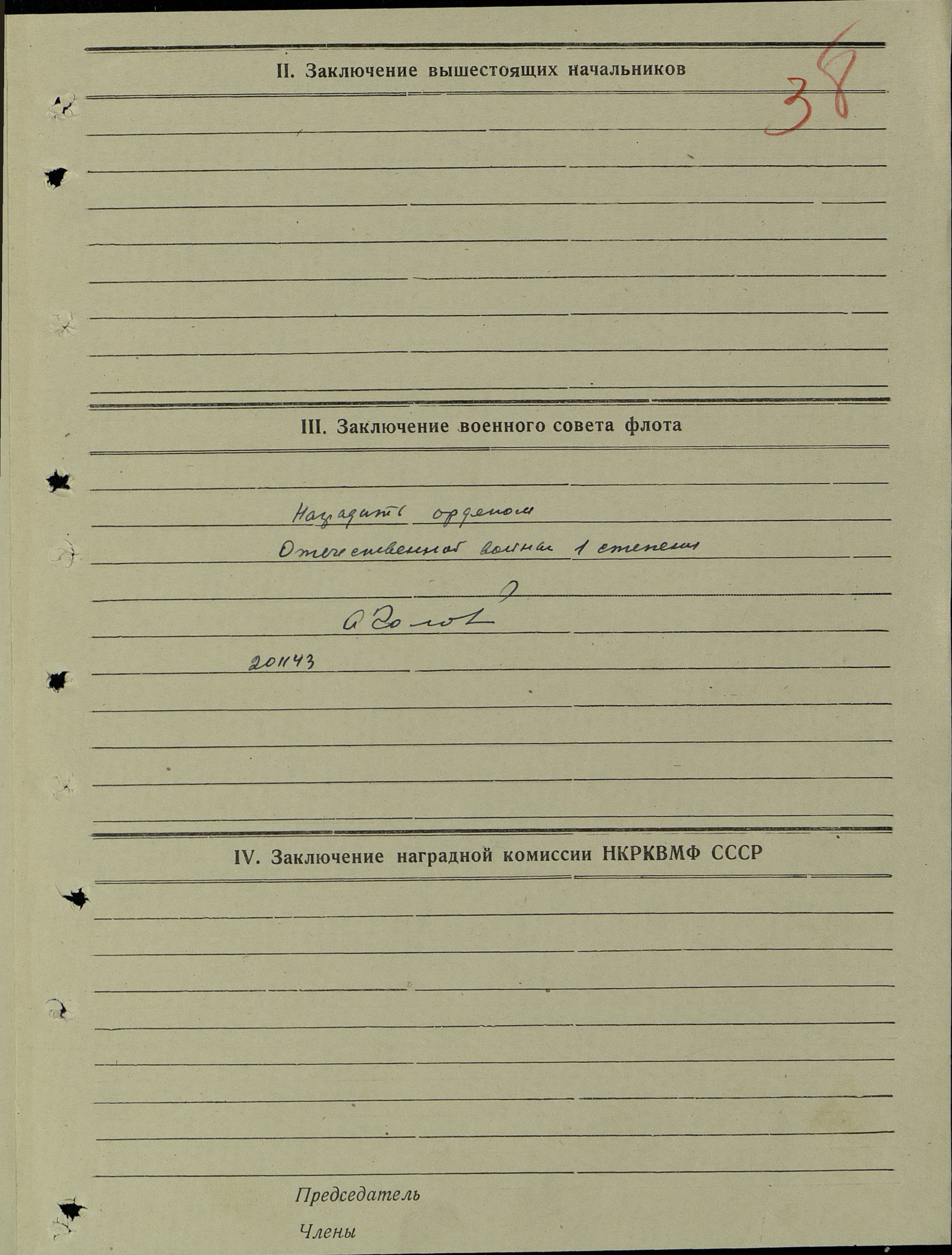 Наградной лист.