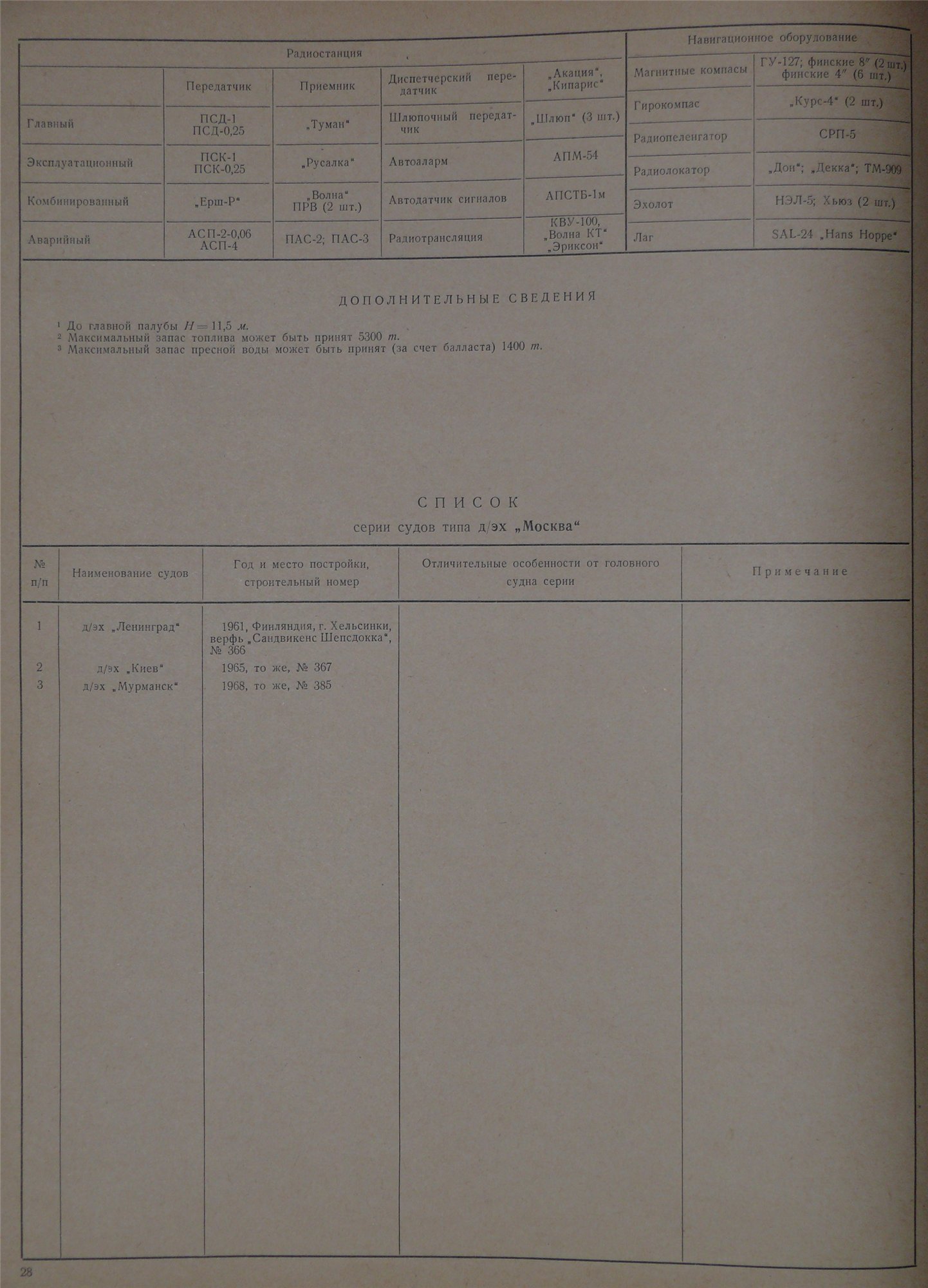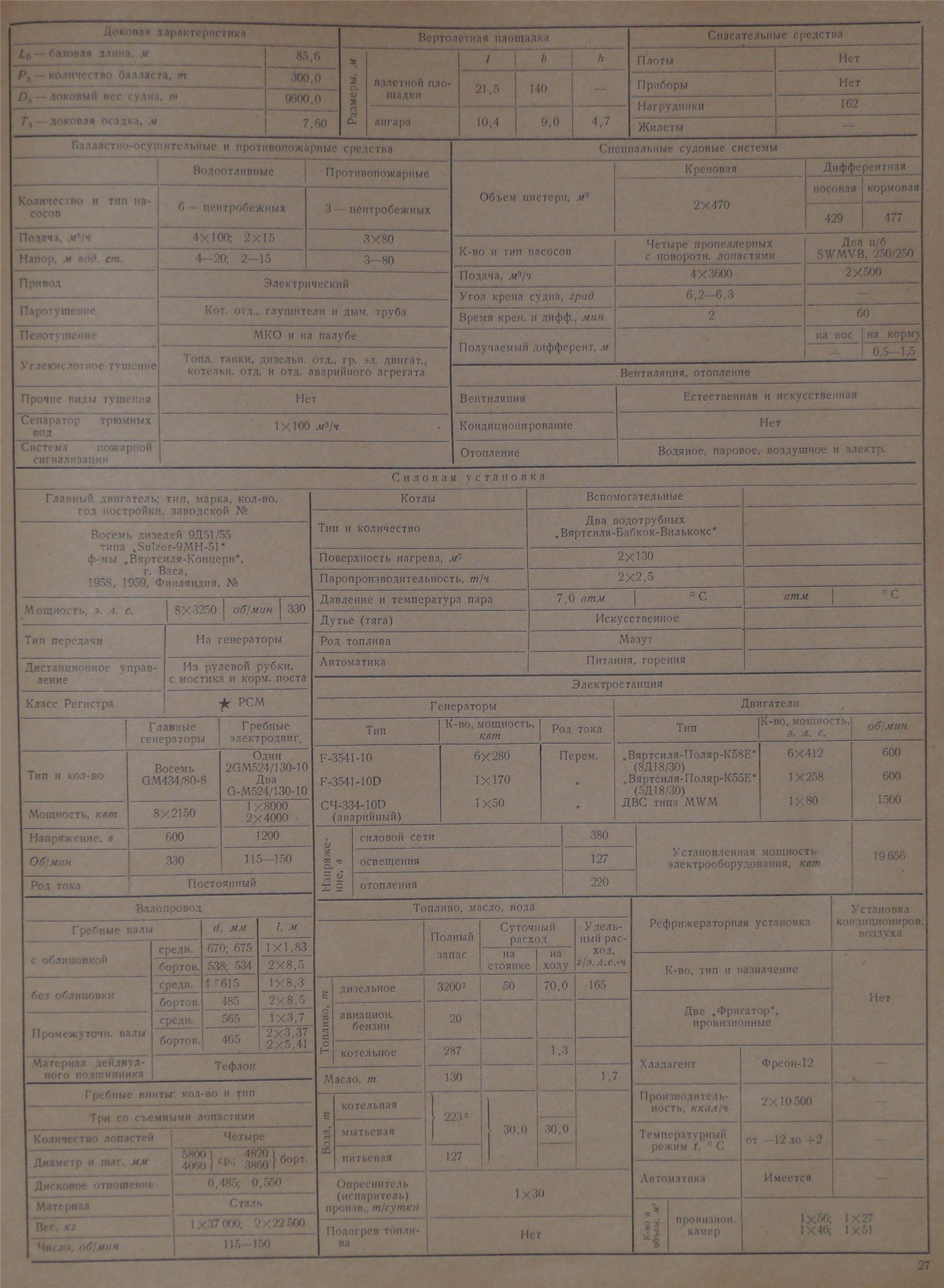 Судно оборудовано современной навигационной аппаратурой. Два радиолокатора, гирокомпасы, штевень-лаг, эхолоты, из них один глубоководный, радиопеленгатор и другие приборы обеспечивают четкое управление кораблем.