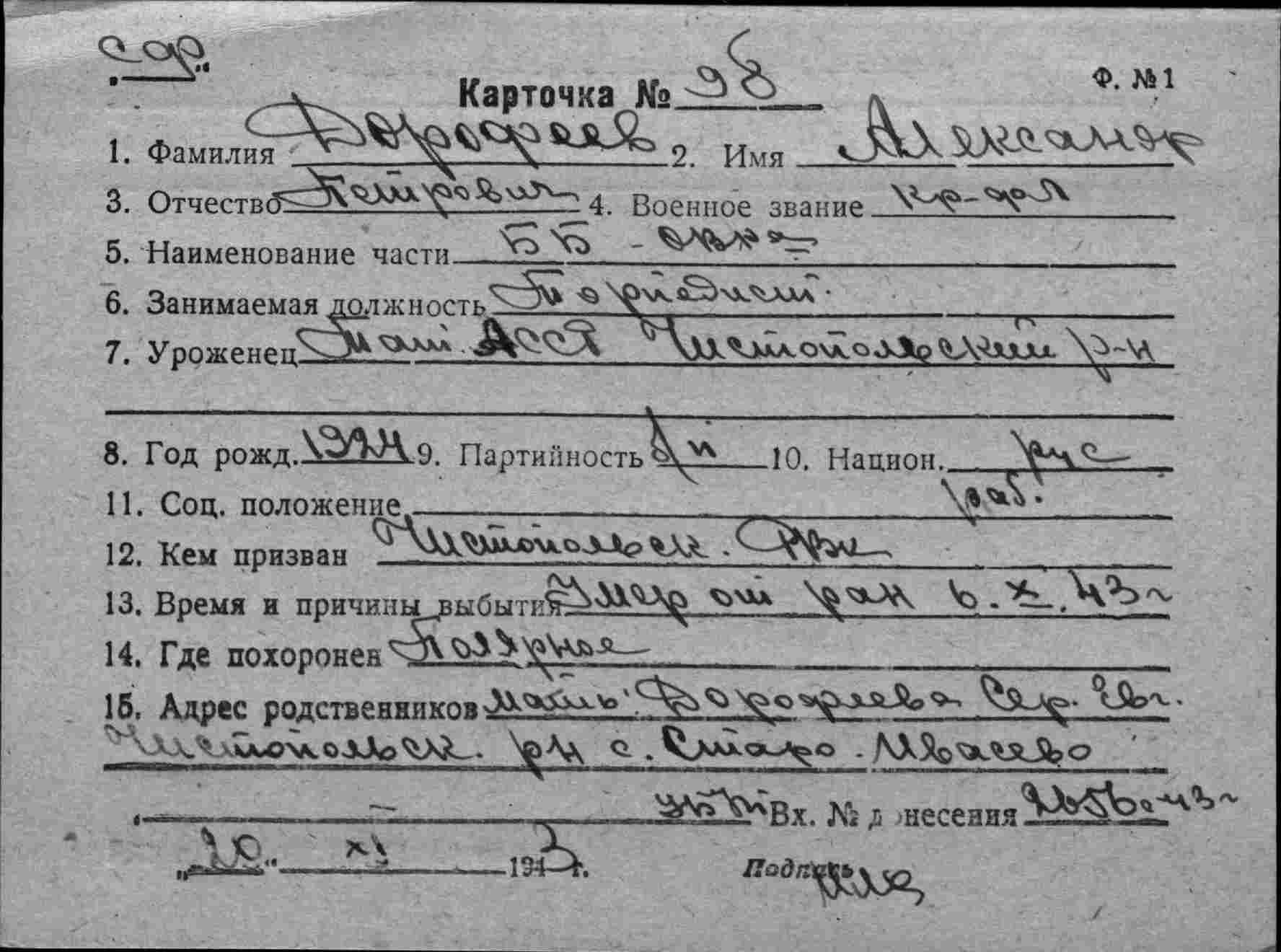 Название источника информации Картотека безвозвратных потерь