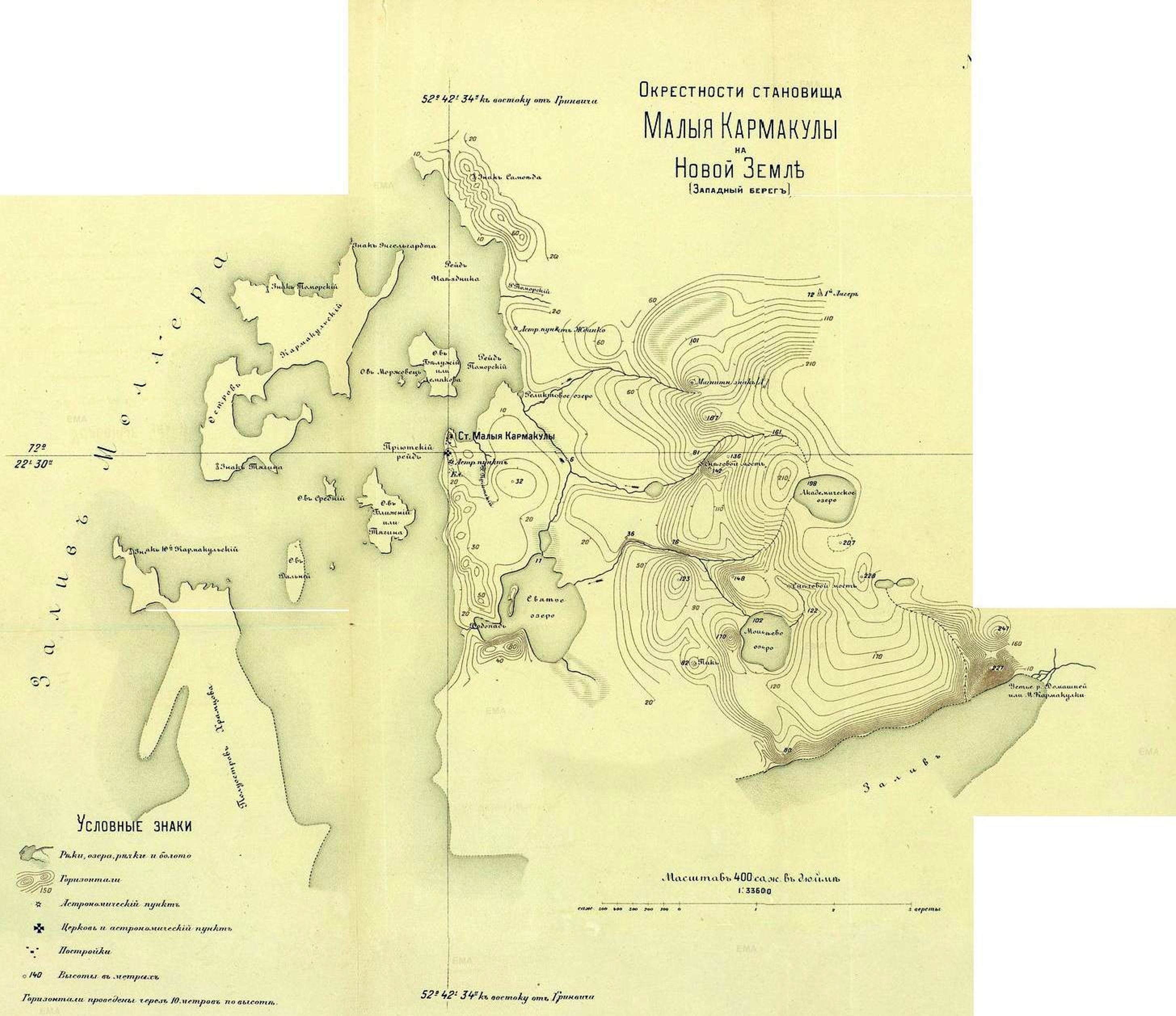 viewtopic.php?f=8&t=4866Полярная станция «Малые Кармакулы»31 июля 1882г. экспедиция второй русской полярной станции «Малые Кармакулы» со всем снаряжением вышла из Архангельска на пароходе «Чижов» и направилась к месту работы. В ее состав входило 10 человек, в том числе начальник станции лейтенант флота К.П.Андреев, научные работники - мичман Д.А.Володковский и врач Л.Ф.Гриневецкий, наблюдатель - вольнослушатель Петербургского университета Н.В.Кривошея, наблюдатели - матросы Кронштадского порта А.Ларионов, Н.Демидов, Ф.Тисков и Я.Трофимов, вольнонаемный служитель В.Тарасов. Погода благоприятствовала мореплавателям, и плавание проходило необычно спокойно по чистой воде. Рано утром 3 августа был усмотрен юго-западный берег Новой Земли - п-ов Гусиная Земля, через сутки «Чижов» уже стал на якорь в 200м от берега Малых Кармакул. Малые Кармакулы ко времени МПГ были уже довольно обжитым местом. В 1877-1873гг. Обществом «Спасение на водах» здесь была построена спасательная станция, предназначавшаяся быть убежищем мореплавателям, потерпевшим крушение. В 1876-1879гг. руководитель строительства спасательной станции гидрограф штабс-капитан Е.А.Тягин провел здесь полный год, в течение которого вел регулярные метеорологические наблюдения. Вместе с Тягиным зимовала его жена, что по тем временам считалось героизмом. В 1881-1882гг. на спасательной станции жили 11 поморов-промышленников, шхуна которых была затерта льдами. В Малых Кармакулах постоянно жило также несколько семей ненцев, переехавших сюда из Малоземельской тундры. В 1882г. два жилых дома и все вспомогательные постройки спасательной станции были переданы экспедиции МПГ. 6 августа выгрузка имущества станции закончилась, и пароход «Чижов» ушел в Архангельск. В тот же день работники станции приступили к ремонту домов, строительству научных павильонов и установке приборов. Вскоре приступили к регулярным метеорологическим и магнитным наблюдениям по полной программе МПГ. 12 ноября началась полярная ночь, которая длится в Малых Кармакулах до 5 февраля, а с конца ноября начались жестокие штормы (Новоземельская бора), сопровождавшиеся сильной пургой, во время которой резко сокращалась видимость и предметы скрывались из виду на расстоянии нескольких шагов. Вместе со снегом ураганный ветер нес с гор множество мелких камней. По описанию Андреева, шум от ударов камней о крышу был настолько силен, что заглушал голоса. В такие дни и часы из дома не выходил никто, кроме вахтенных наблюдателей. Идти приходилось, держась за штормовой леер, буквально отвоевывая у пурги каждый шаг. Стремительно несущийся снег залеплял глаза, ветер затруднял дыхание; простая в обычных условиях операция - запись наблюдений на метеорологической площадке превращалась в сложную проблему; наблюдательная книжка в таких условиях для записи не годится, и приходилось пользоваться гладко отполированной дощечкой или записывать дома по памяти. Новоземельская пурга представляет грозную опасность для любого человека, оказавшегося вне дома: в 1931г. наблюдатель советской полярной станции «Маточкин шар» М.Д.Лебедев, возвращаясь с наблюдений во время сильной боры, потерял спасательный леер и замерз вблизи дома. В 1957г. во время боры ураганным ветром сорвало и унесло палатку, в которой работали на морском льду наблюдатели полярной станции «Русская Гавань»
