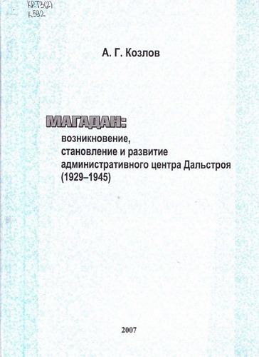 А.Г. Козлов "Магадан: возникновение, становление и развитие административного центра Дальстроя (1929 - 1945)"