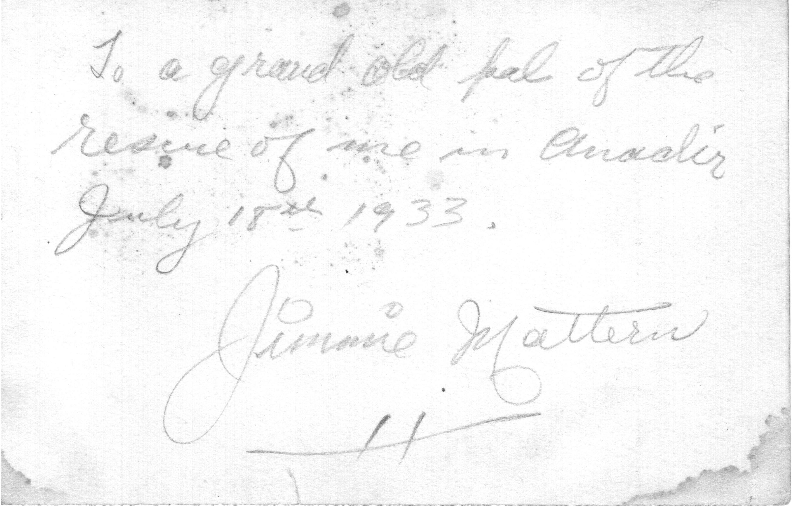 фотография самолета Дж. Маттерна, потерпевшего аварию под Анадырём, подаренная Ф.К. Куканову на память: