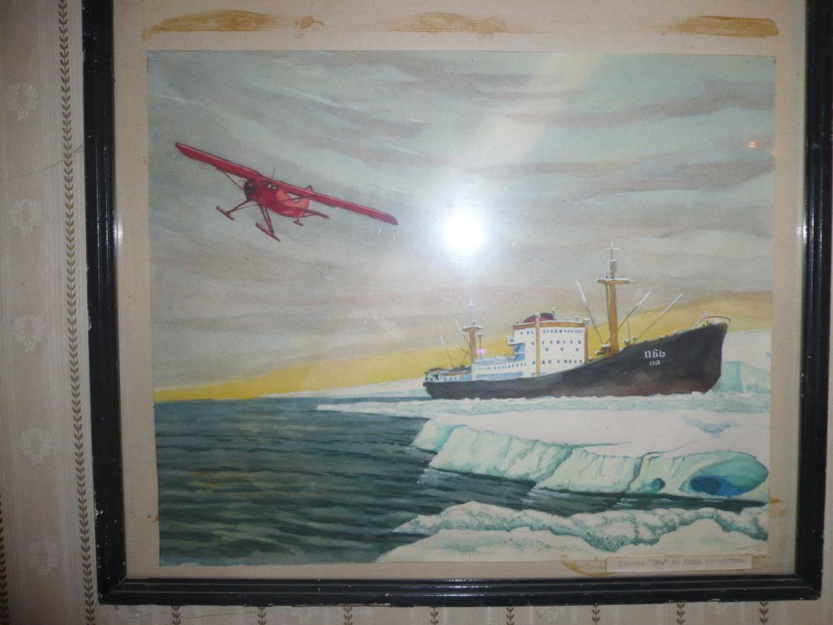 Правда подпись звучит иначе "Як-12 на борту теплохода "ОБЬ" на пути в Антарктиду в процессе сборки. Архив летчика Кириллова"