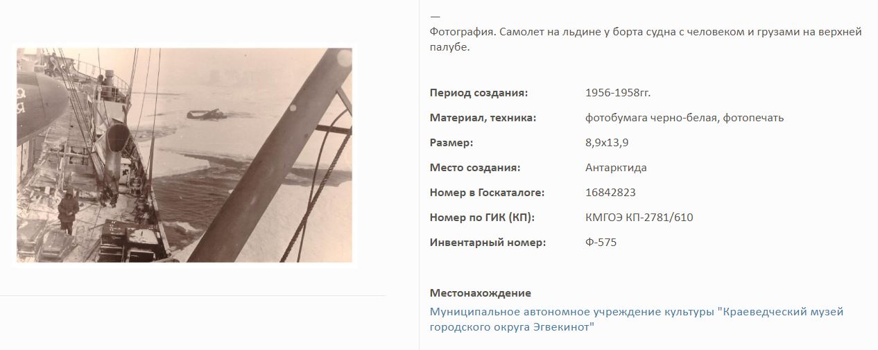 В Госкаталоге замечтельная серия фото Н343 из Антарктиды из собрания Муниципального автономного учреждения культуры "Краеведческий музей городского округа Эгвекинот".