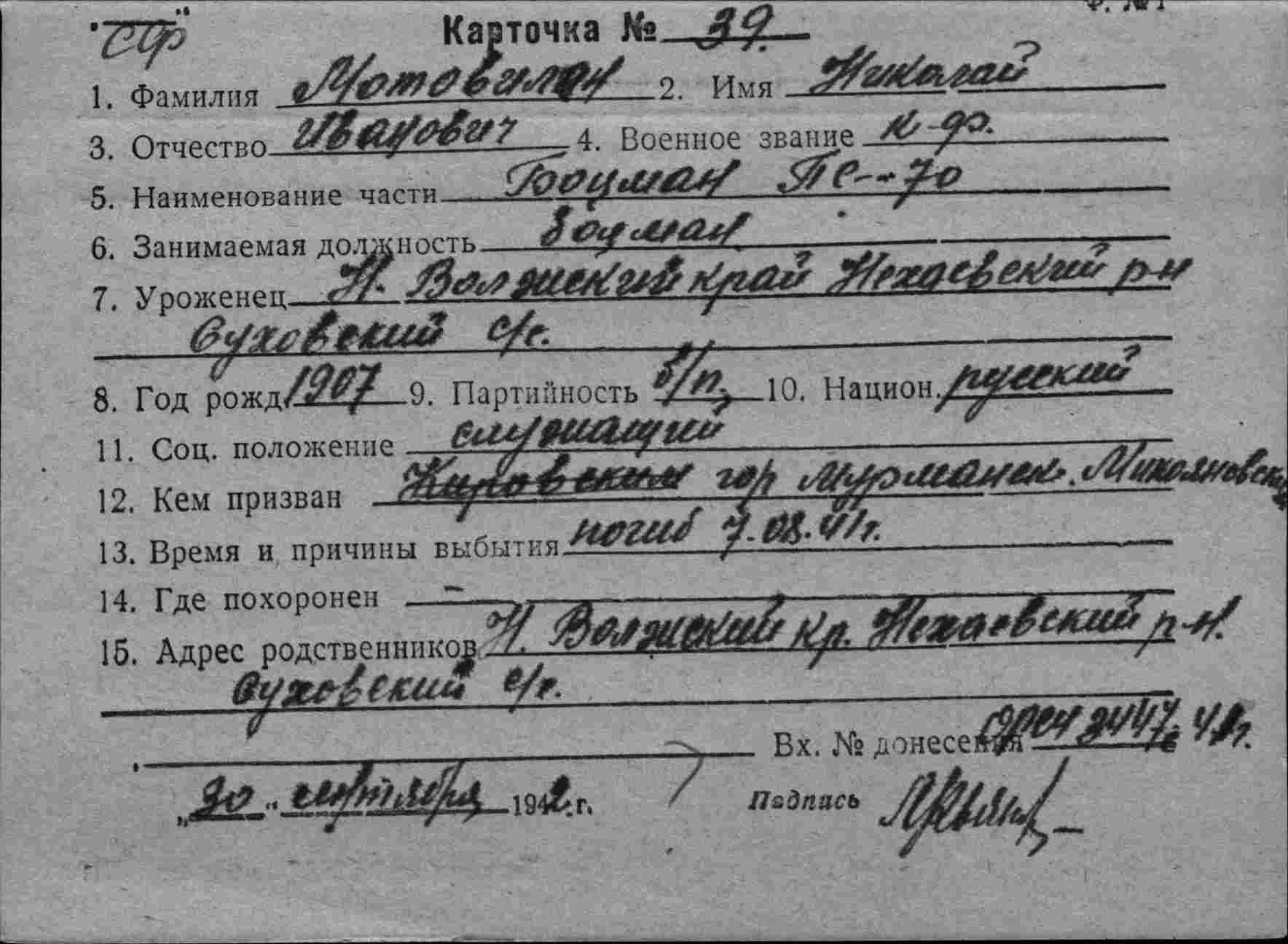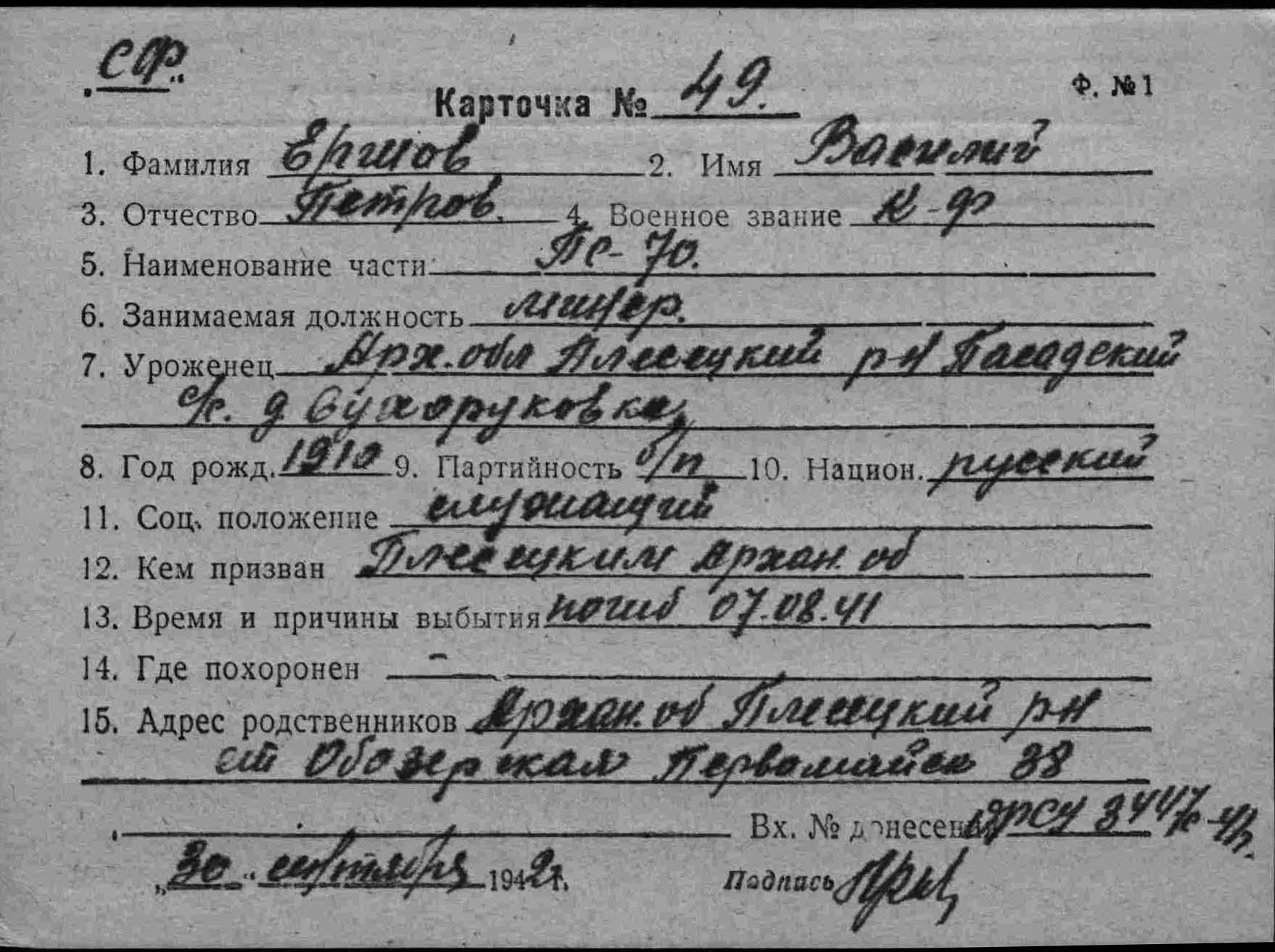 Дата выбытия 07.08.1941
