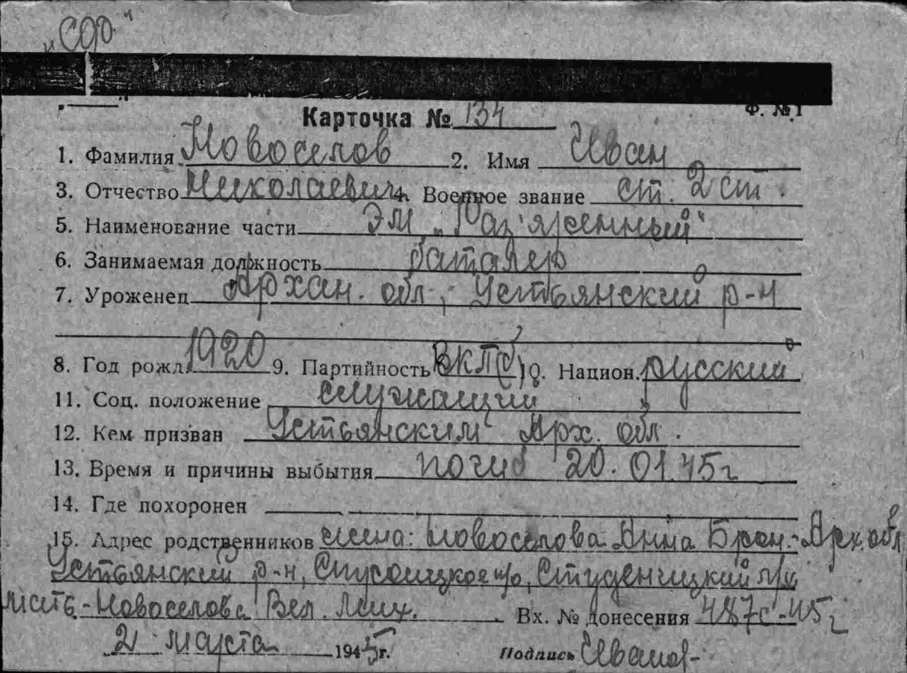 Список экипажа ЭМ "Разъяренный" погибших 20 января 1945 года при торпедировании германской ПЛ U-293