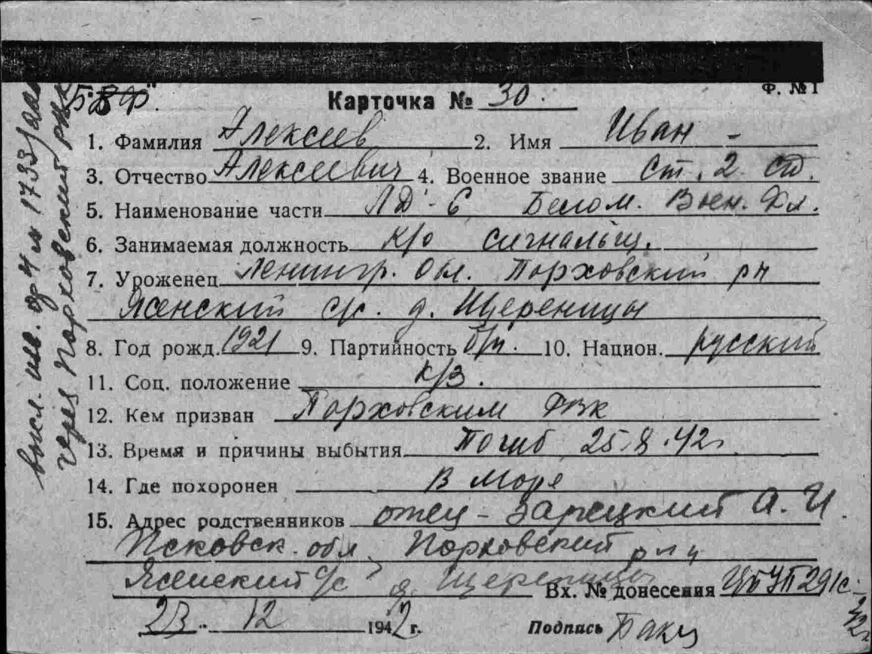 …Уходят ветераны. Вернулось наше письмо из Эстонии, где в последние годы жил сибиряковец Иван Алексеевич Алексеев. Пометка на письме была более чем лаконичной: «Адресат умер…»