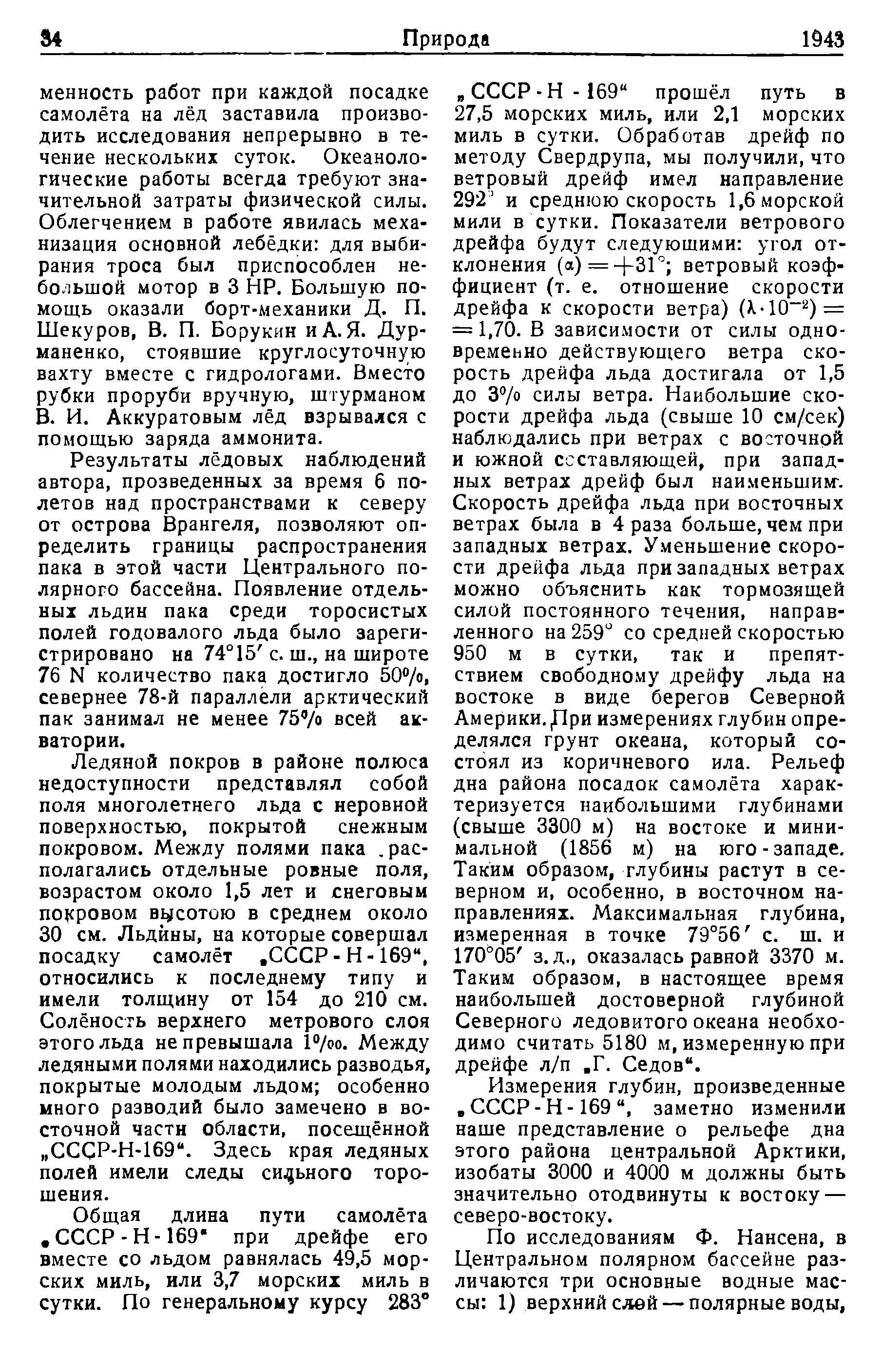 В 1941 году участники экспедиции к полюсу относительной недоступности на самолете “Н-169” измерили глубину океана вблизи “Точки Уилкинса” и получили цифры 2647 и 2427 метров. Штурман экипажа этого самолета В.И.Аккуратов пишет в своей книге “Лед и пепел”: “Разница между нашим и американским измерениями равнялась 3013 метрам!” Иначе говоря, считается, что пилоты совершили большую ошибку в измерении или того хуже, указали вымышленную глубину океана.