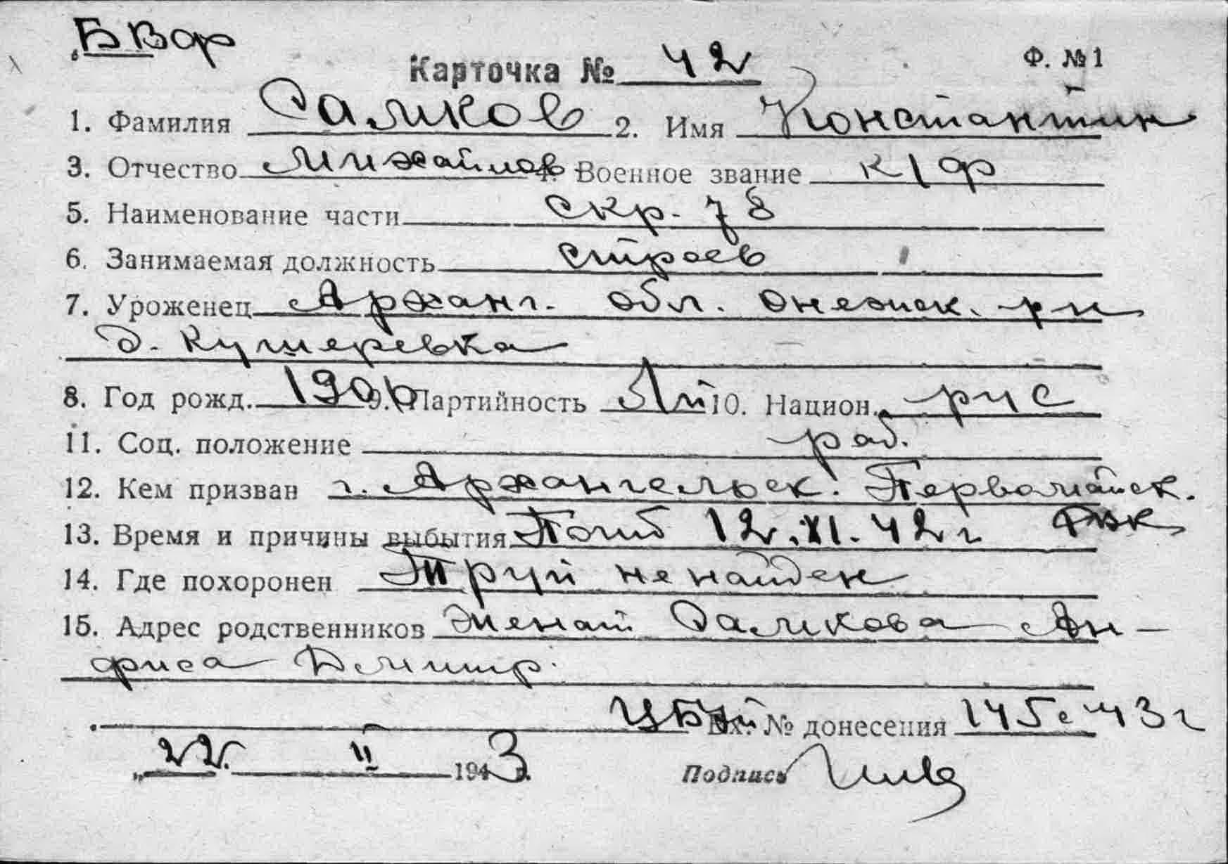 Дата и место призыва Первомайский РВК, Архангельская обл., г. Архангельск, Первомайский р-н