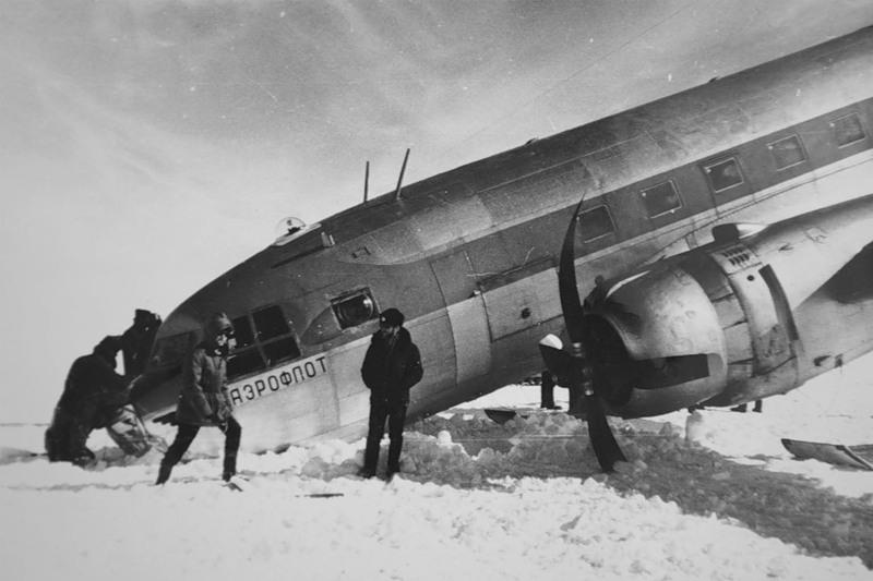 Командир корабля В.П. Гамов, аварийный Ил-14 СССР-52066.jpg