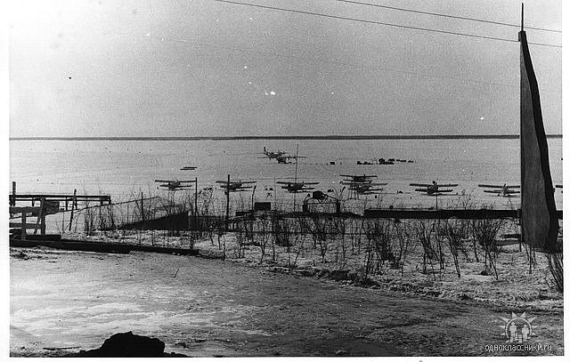 Стоянка лыжных Ан-2 на Колыме, на форватере Пантелеихи.