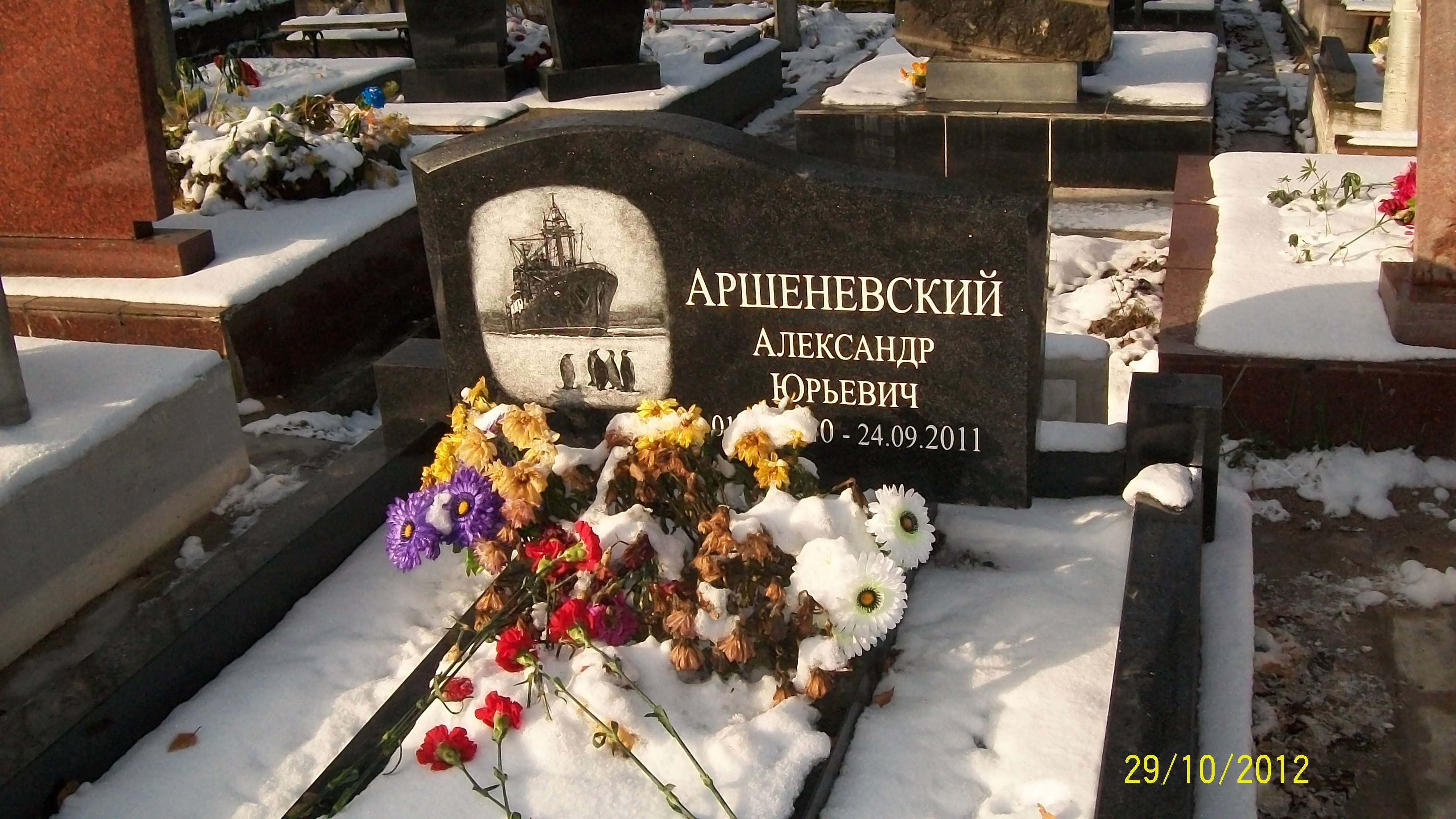 Прошли годы... И вот на днях из Питера пришла плохая весть: 24 сентября 2011 года скончался и похоронен на Южном кладбише Санкт-Петербурга Александр Юрьевич Аршеневский, мой друг и соплаватель. Как же так? Это ужасно несправедливо! Ведь он прожил всего три года, после того как оставил флот... В памяти пронеслись яркие страницы нашей молодости и лучшие годы жизни, отданные совместной работе в Мурманском морском пароходстве...