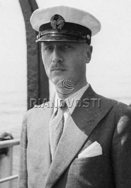 Летчик Маврикий Слепнев на борту парохода «Смоленск» по завершению операции по спасению челюскинцев, 1934 г.