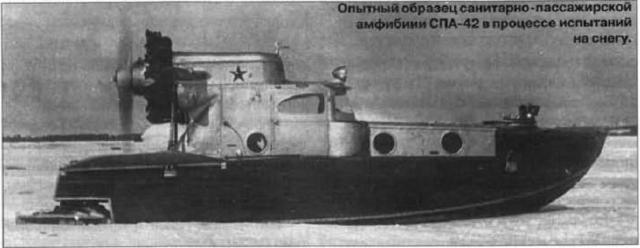 Е.М. Паппе, ранее трудившийся в системе ГУСМП и уволившийся по собственному желанию в сентябре 1938 г., в начале войны по заказу НКВД приступил к разработке вооруженной пулеметом на турели 14-местной санитарно-пассажирской амфибии СПА-42. Паппе участвовал в работах БРИЗ ГУСМП и при создании новой машины учел весь опыт, накопленный к этому времени конструкторами. СПА-42 проектировалась под двигатель М-22 мощностью 480 л.с. Ее полный вес по проекту был равен 3620 кг. Емкость топливного бака составляла 440 л, масляного — 40 л. Амфибию предполагалось использовать для эвакуации раненых, перевозки десантов или диверсионных групп в различных погодных условиях и в любое время года по снегу, льду или воде. СПА-42 имела смешанную дерево-металлическую конструкцию с обшивкой из арктилита.